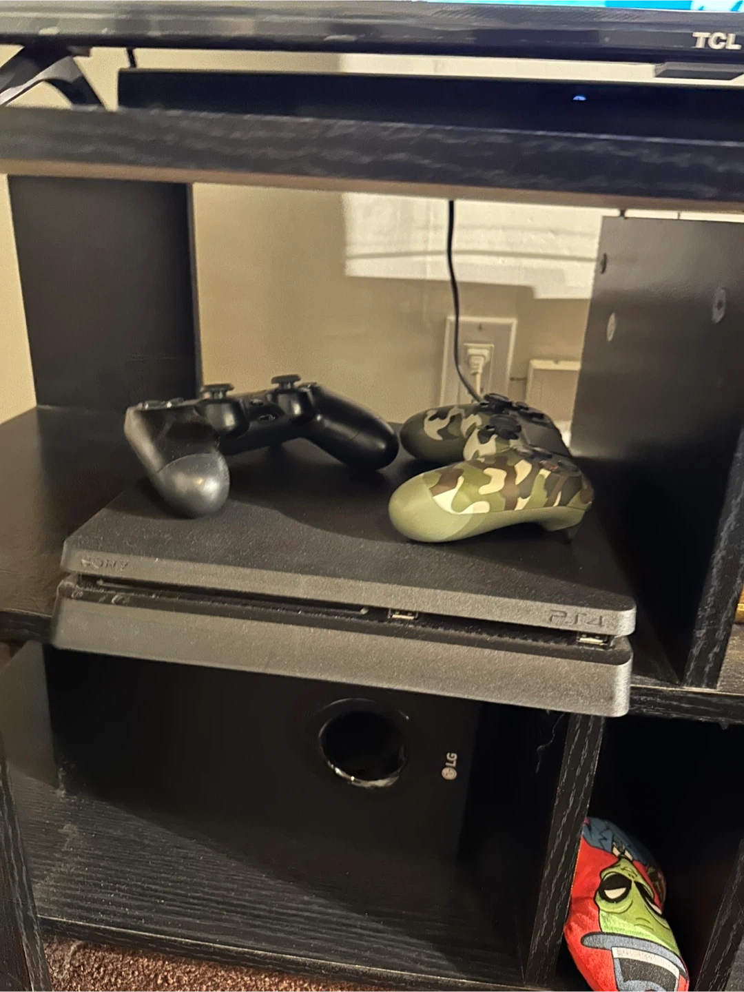 โข PS4 Slim + 2 Controllers - Runs smooth, all cables incl.