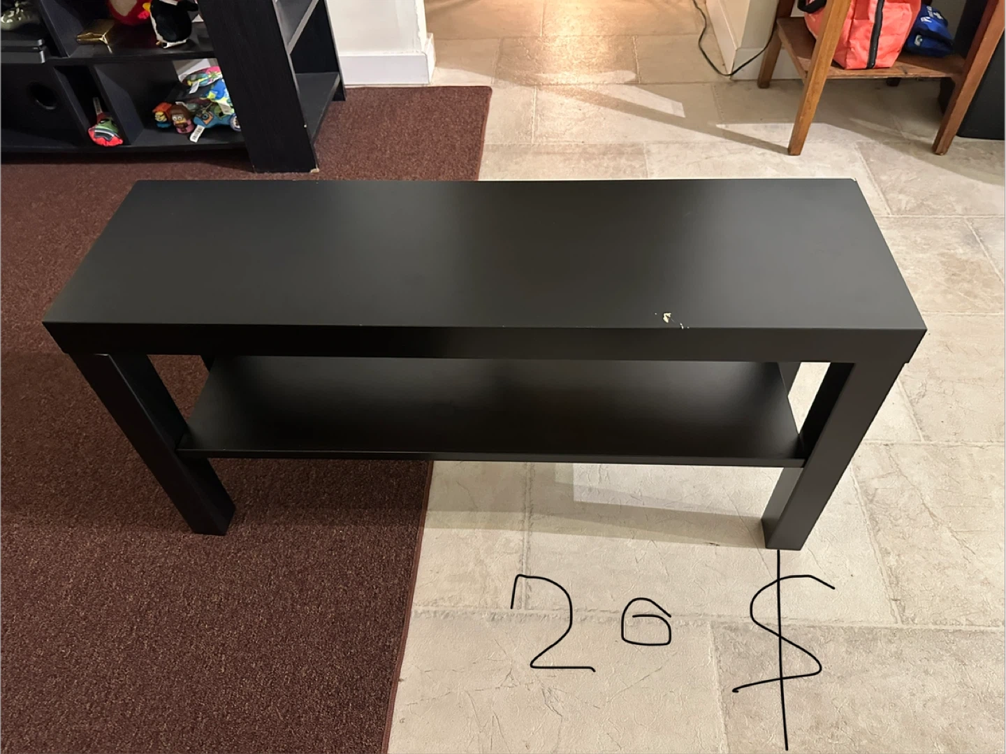 ๐บ Small Side TV Stand - Solid black/wood, space-saver. $20