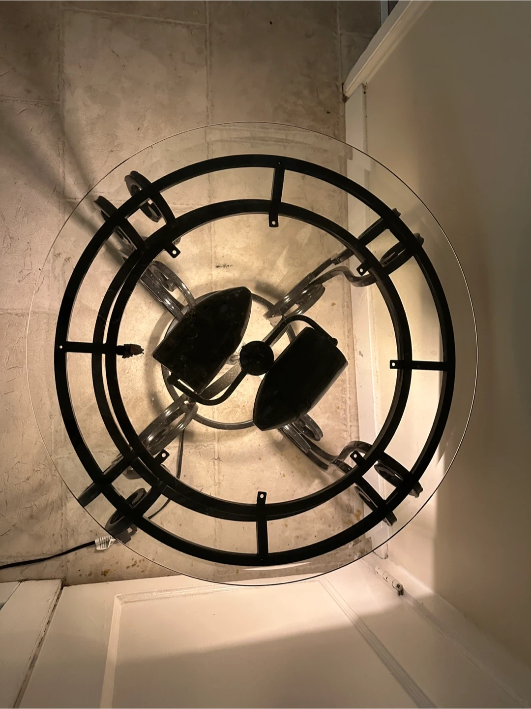 ๐๏ธ Black Glass Coffee Table w/ Built-in LED Lights - Fancy scrolled base, lights work (~24โ tall). $40