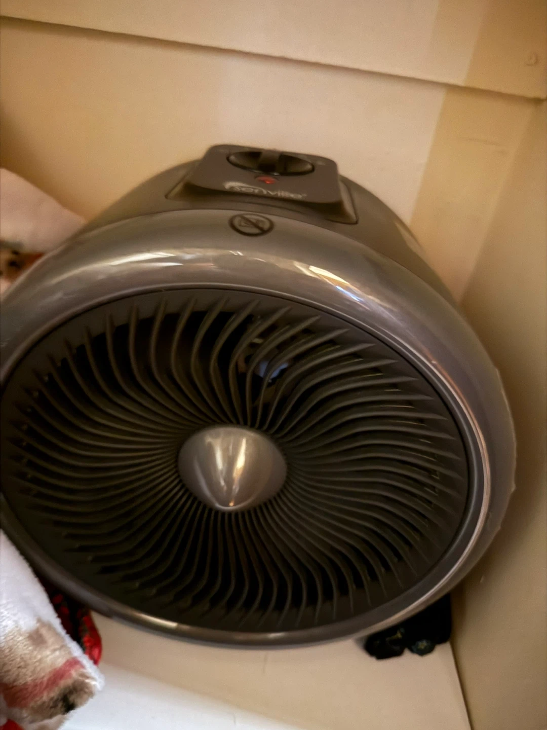 This is a Senville portable electric heater and fan. It features multiple settings for heat and fan speed. Great for small spaces!