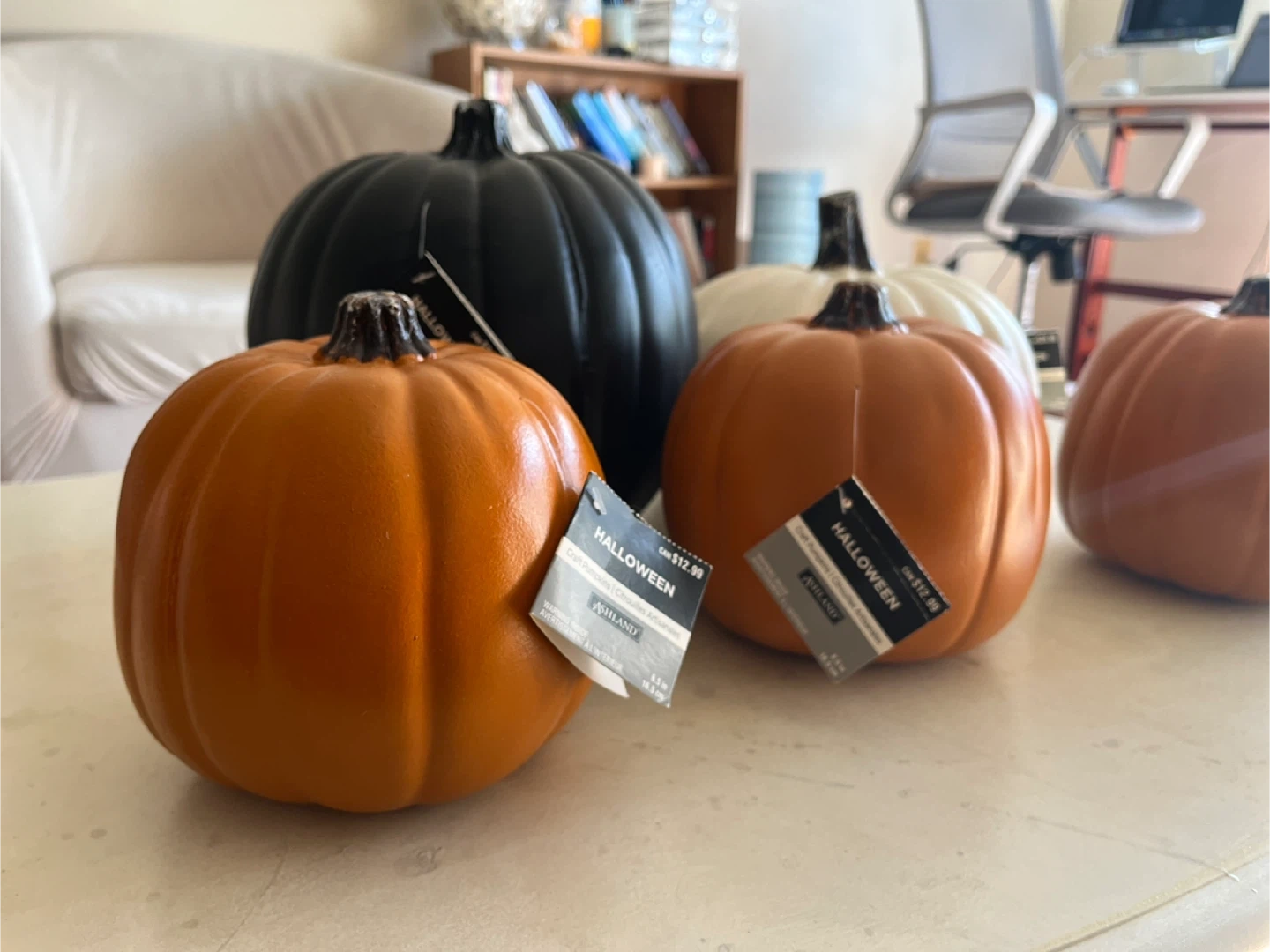Decorative craft pumpkins perfect for Halloween. Condition is new and price is fraction of regular price for all five.