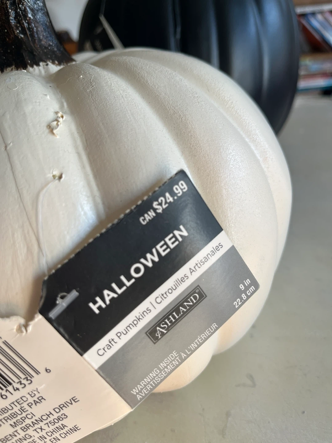 1 x large black pumpkin - 9” tall top of stem x 7.5” wide