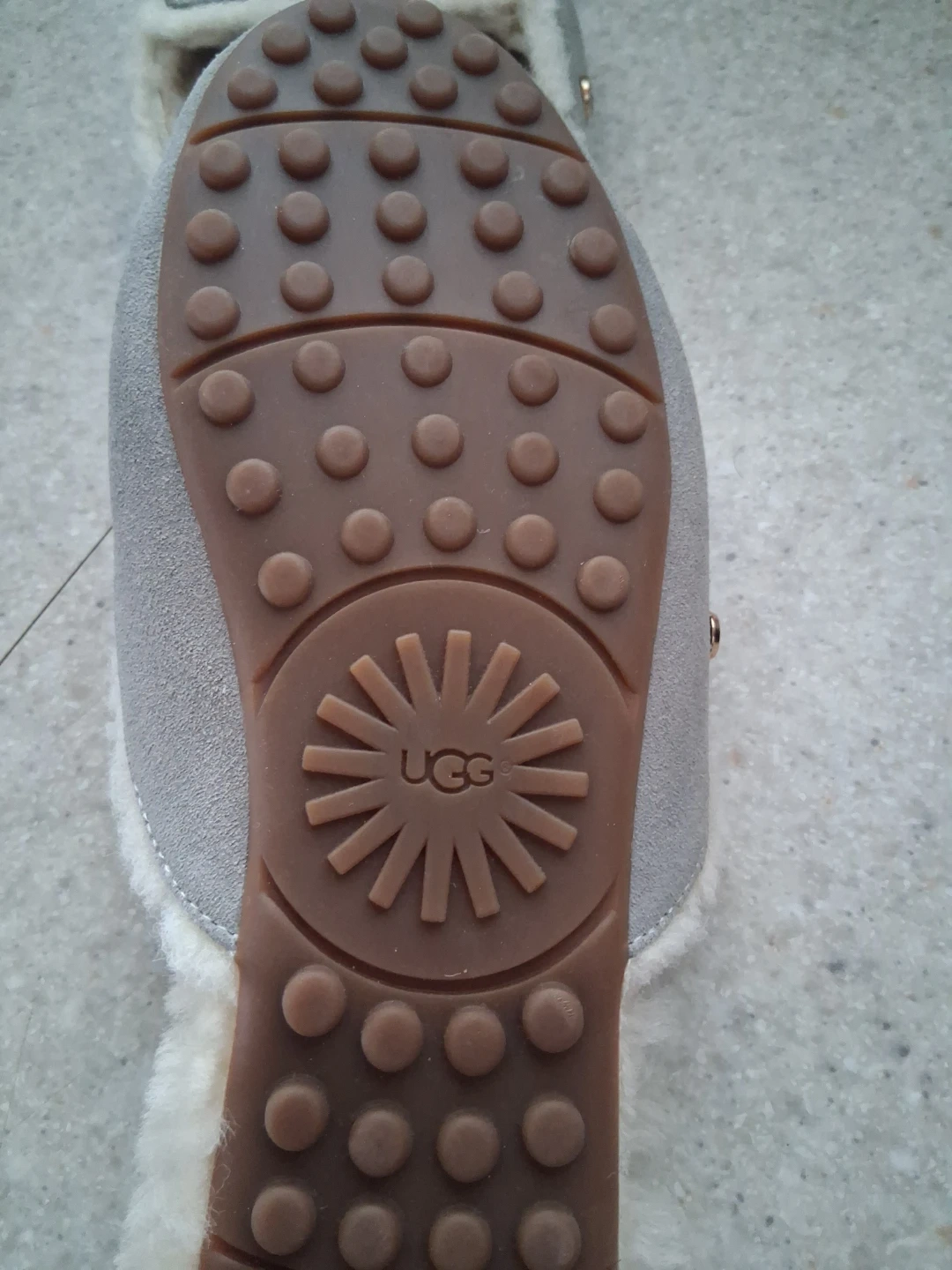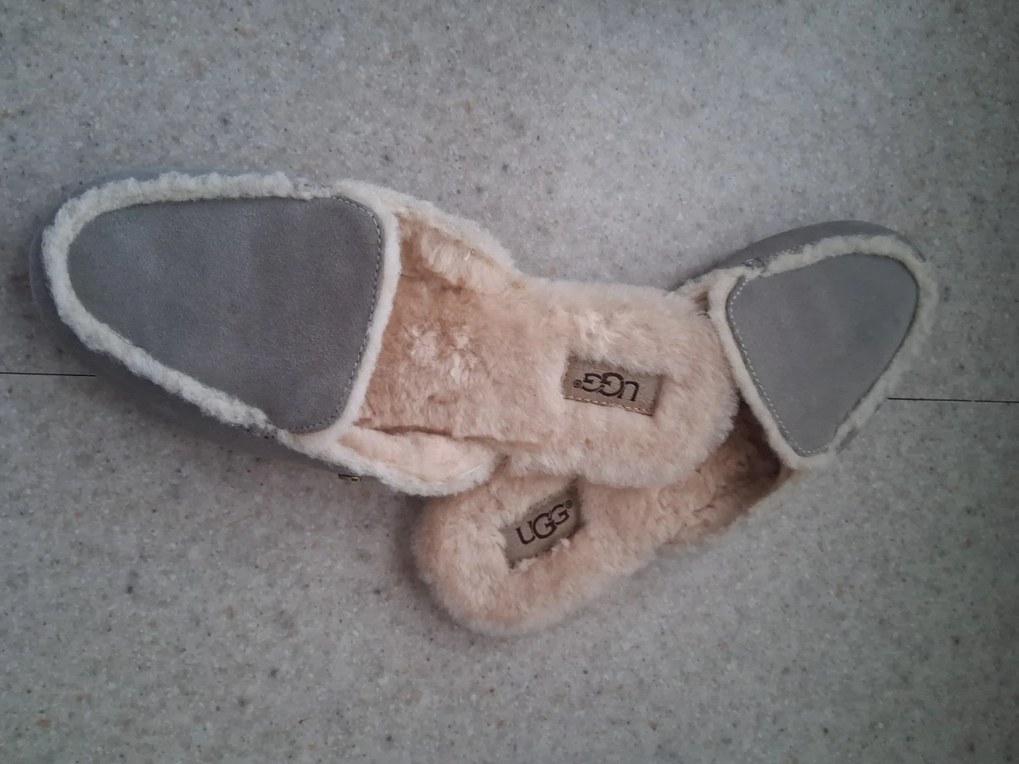 Cozy UGG slippers for Ladies! Size 7. Brand new condition. Perfect grey tone. Neutral. Goes with everything!