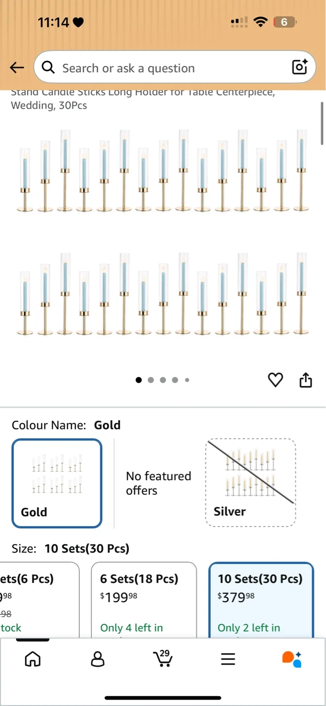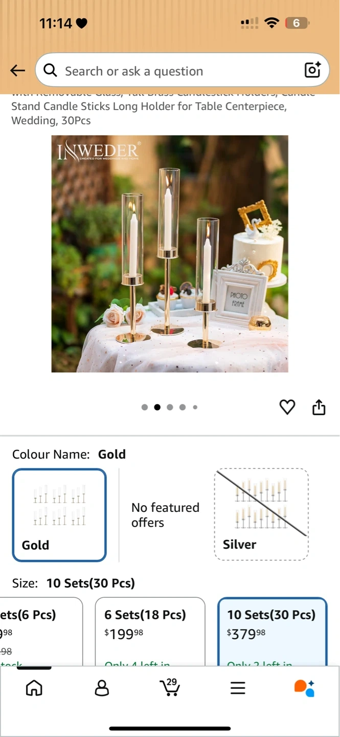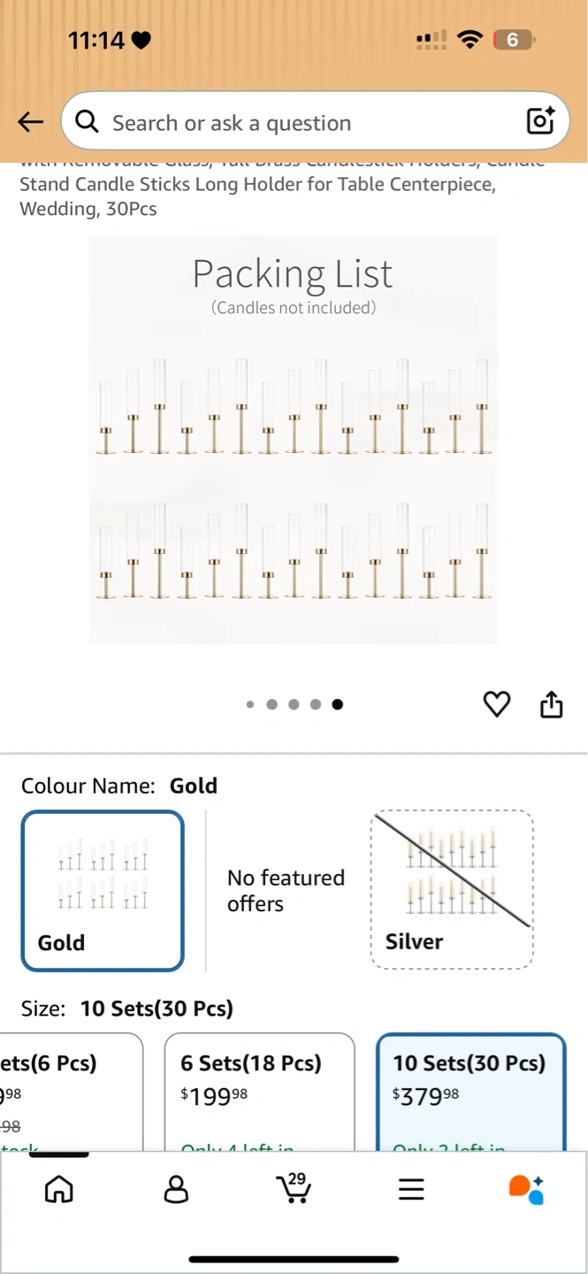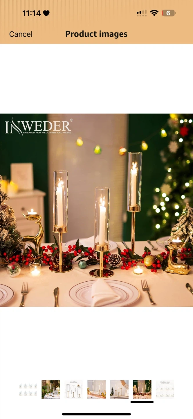 T This set includes three elegant gold metal candle holders with clear glass hurricanes. They're designed for table centerpieces, weddings, and home decor. The tallest holder measures 18.1 inches, the middle 16.34 inches, and the shortest 13.97 inches.