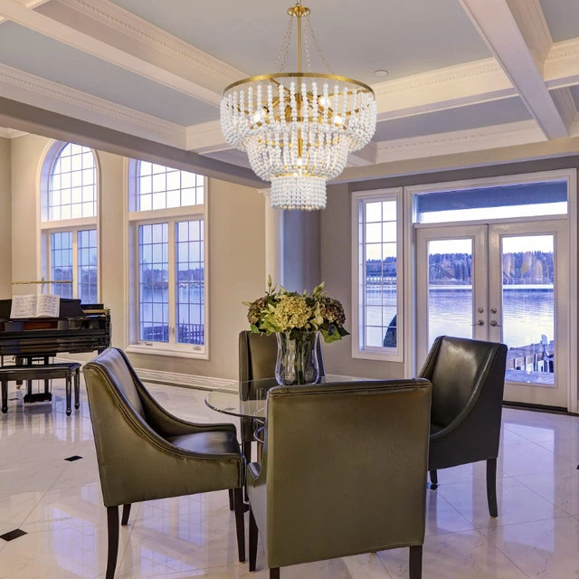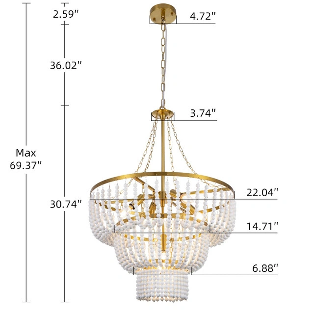 Gold Chandeliers Dimension: 3 tiers, 30.7"H x 22.04" L, Chain Length: 36.02" fully adjustable (Canopy Size: 4.72" ),Large chandelier looks great on high ceilings, compatible with flat, sloped, slanted and vaulted ceilings