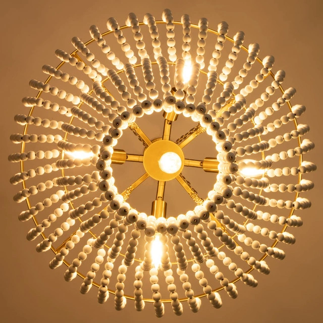 BRAND NEW Wellmet 22” Boho Wood Beaded Chandelier, Gold