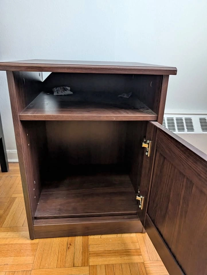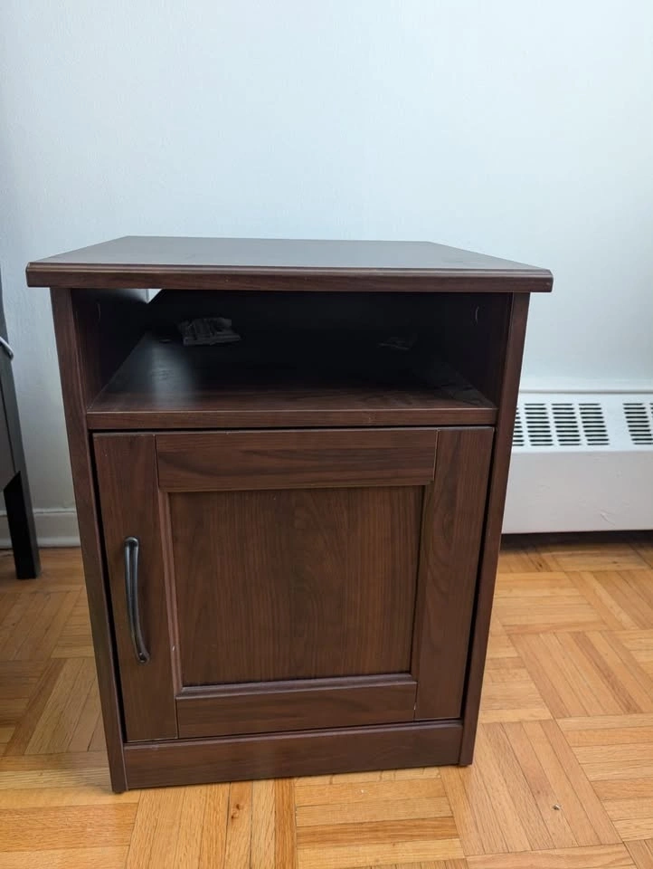 Two IKEA SONGESAND nightstands with drawer and open shelf, brown finish. No scratches. $50 each or both for $90. Pairs with IDANAS bed (also for sale). Relocating abroad. Near Davisville subway Toronto.