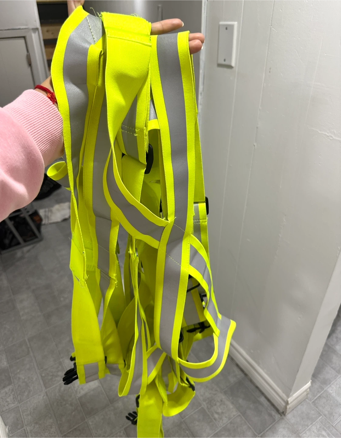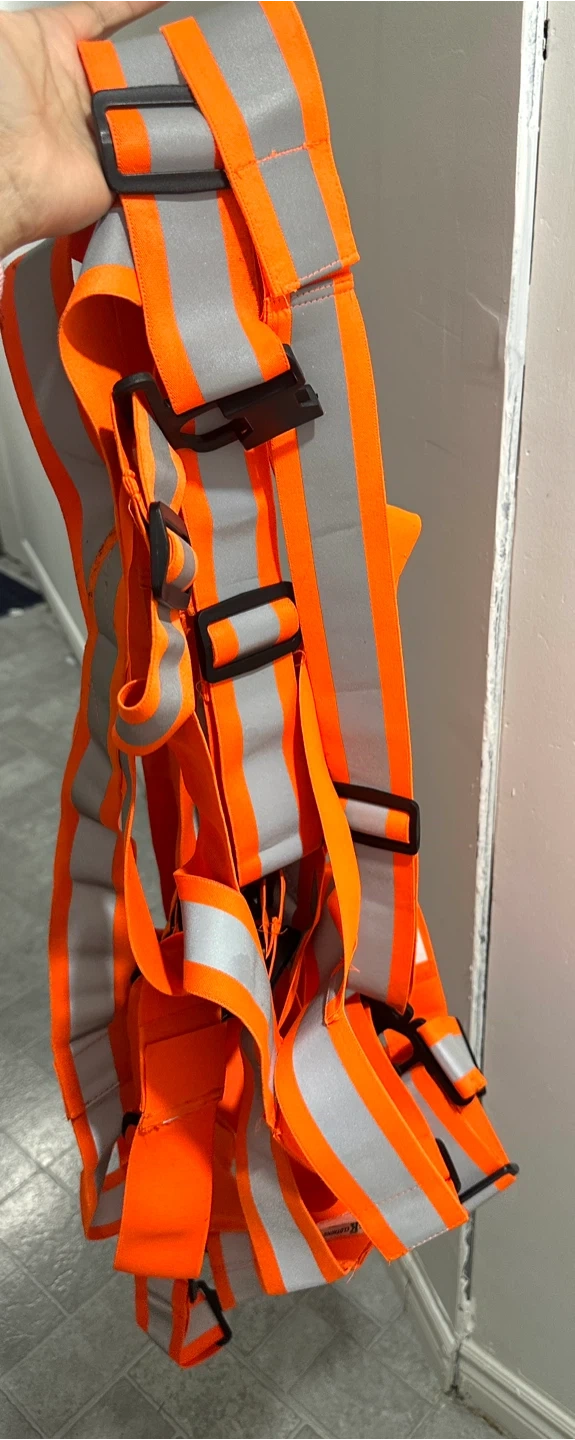 High visibility safety vests for sale. Used just once. It is perfect for construction, traffic control, or any job where you need to be seen. Available in orange and green.