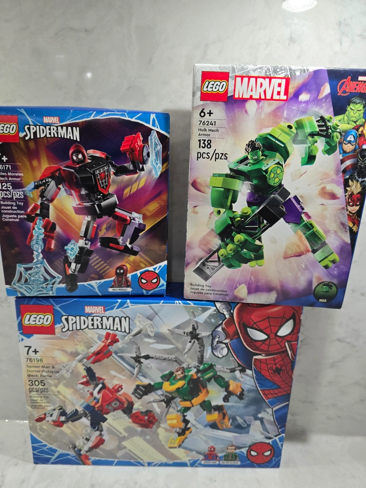 Selling three LEGO Marvel mech armor sets: