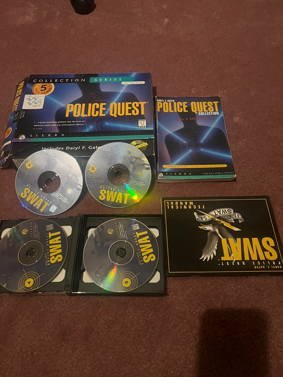 This collection includes the Police Quest Collection and SWAT 4 PC games. The Police Quest Collection box set contains 5 games. Both are collector's series editions. Includes installation guides and technical manuals.