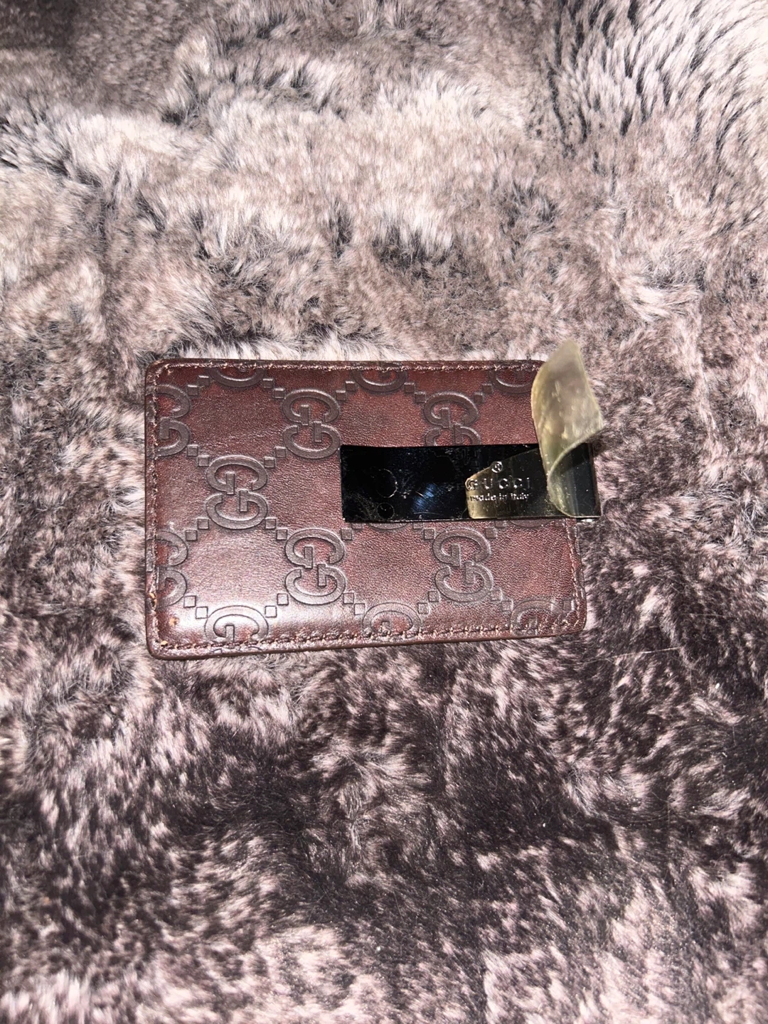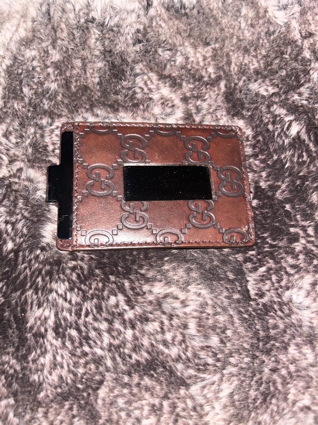 Authentic Gucci card and money clip card holder. Features the iconic GG monogram embossed on brown leather. Made in Italy. It has a metal money clip. Plastic still on - never used.