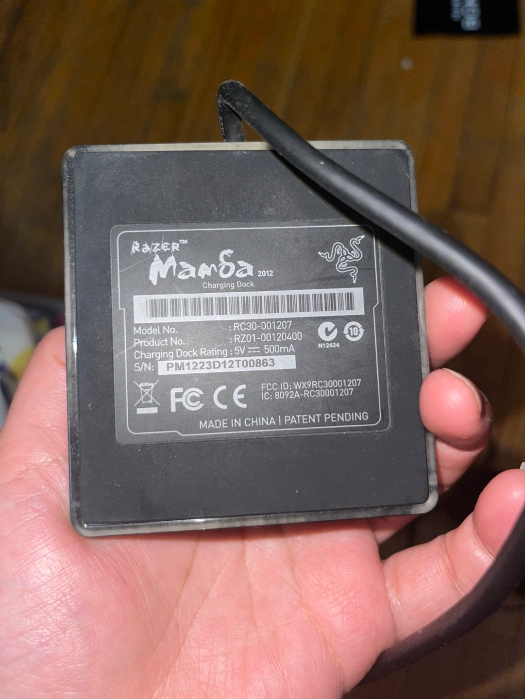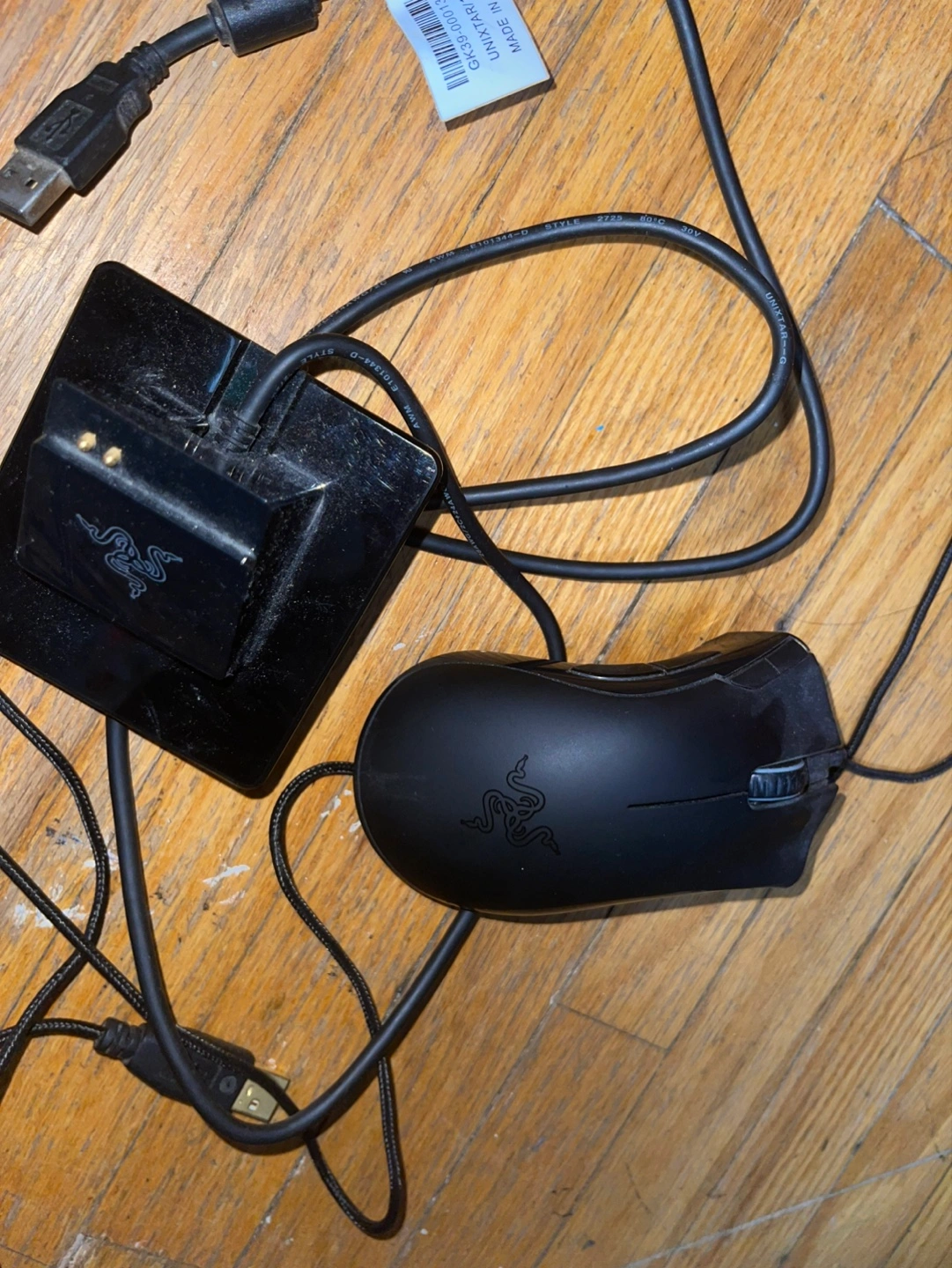 Razer Mamba wireless gaming mouse and charging dock. Includes USB cable.