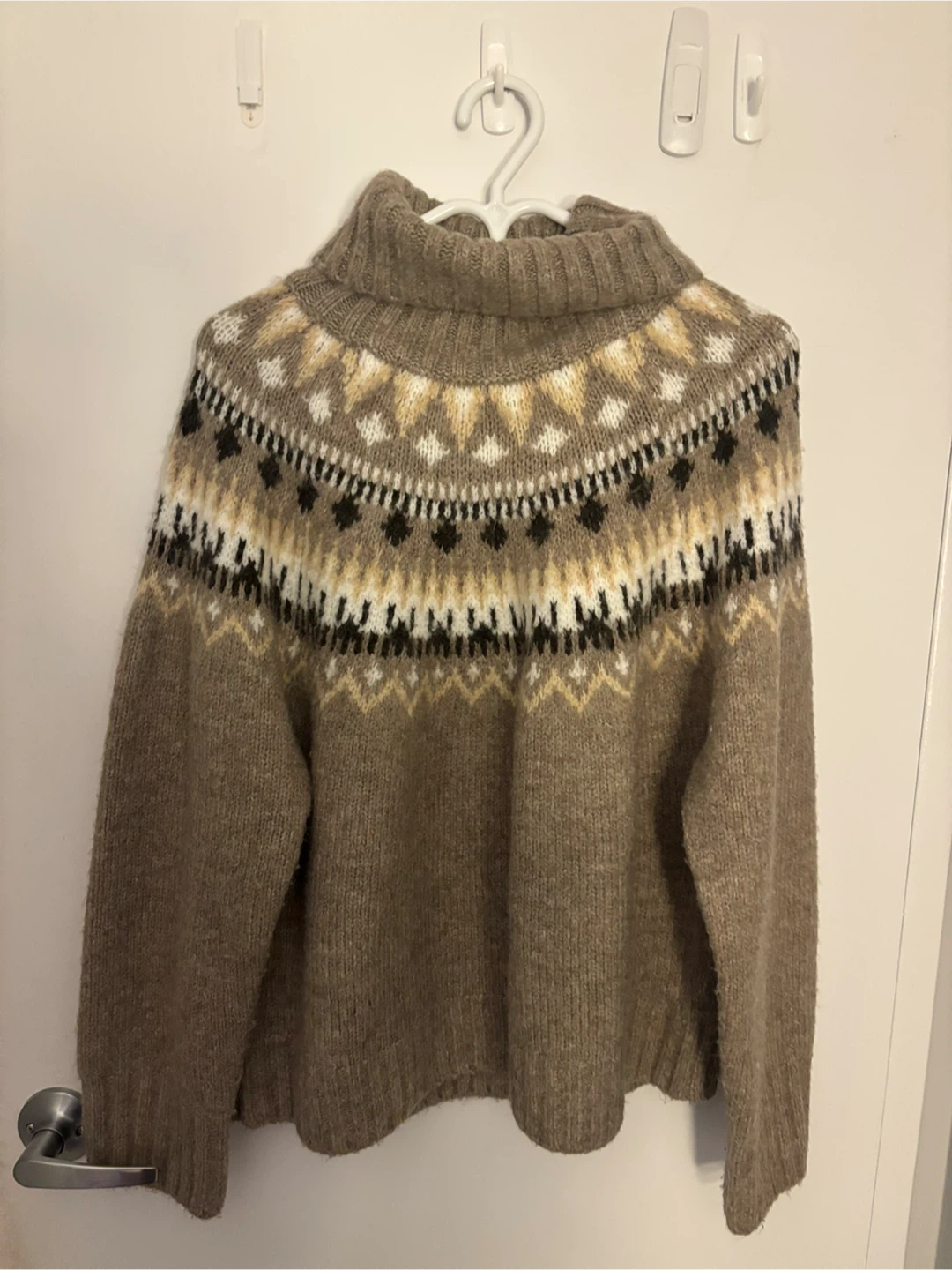 Cozy H&M L.O.G.G. turtleneck sweater featuring a classic fair isle pattern. It's made from a soft, warm knit blend. Great for staying stylish and snug during colder weather!