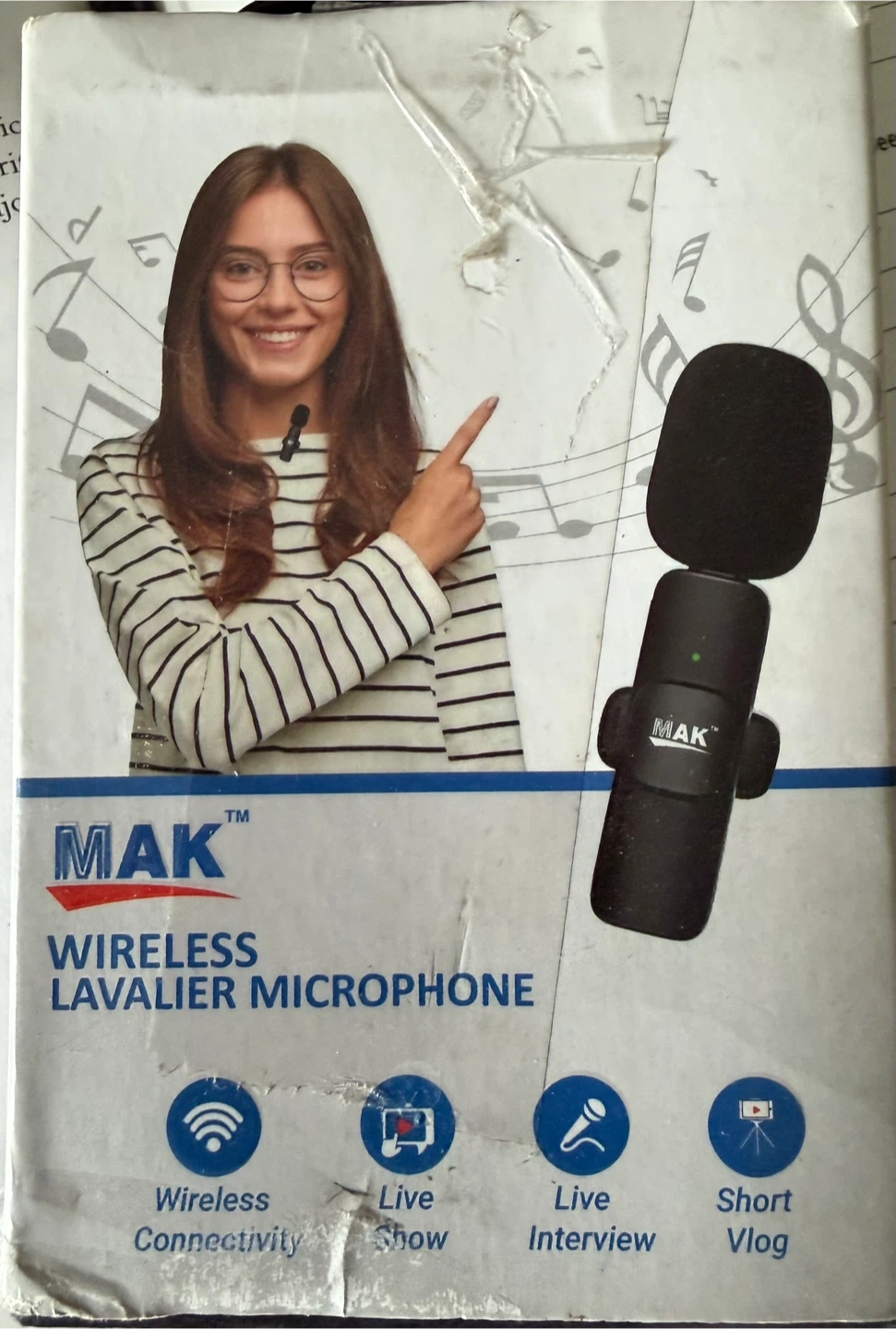 wireless lavalier microphone set for vlogging, interviews, live shows. It includes two microphones and a receiver. It comes with various adapters for connecting to Android and iPhone.