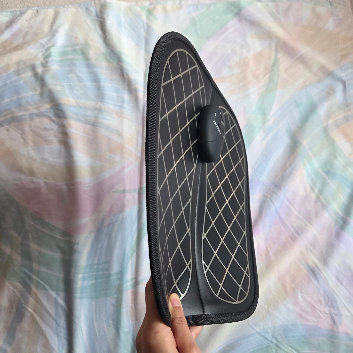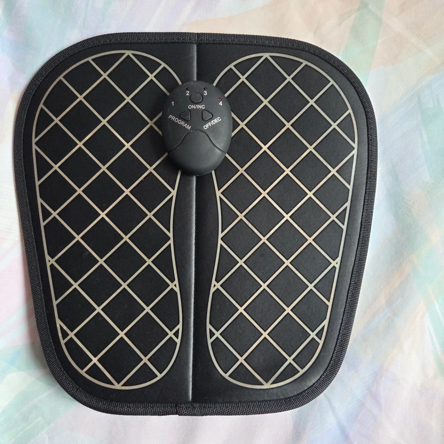 Selling a foot massager pad featuring a control button to adjust the intensity