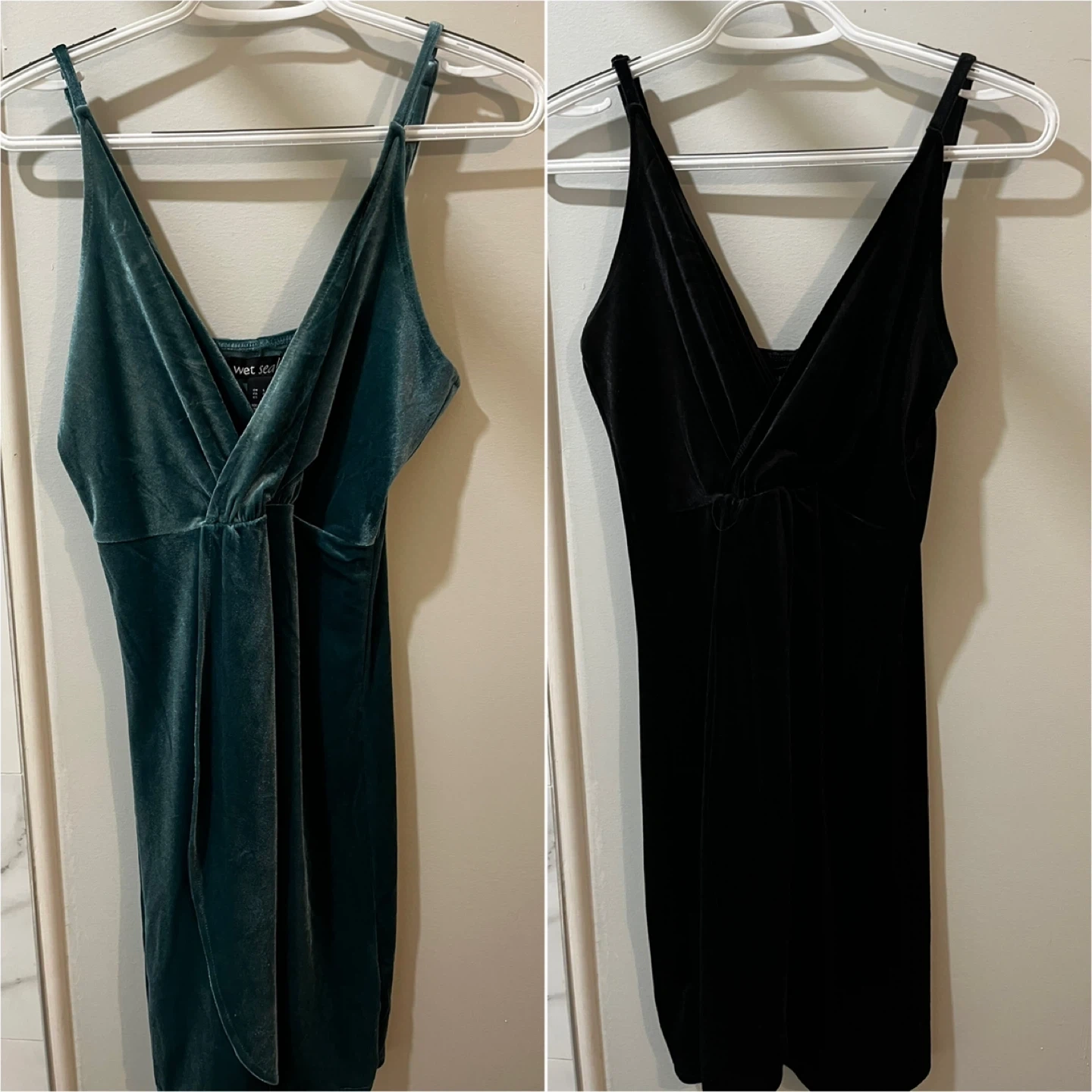 Short Velvet Dress in Black and Teal Color (size M/L)