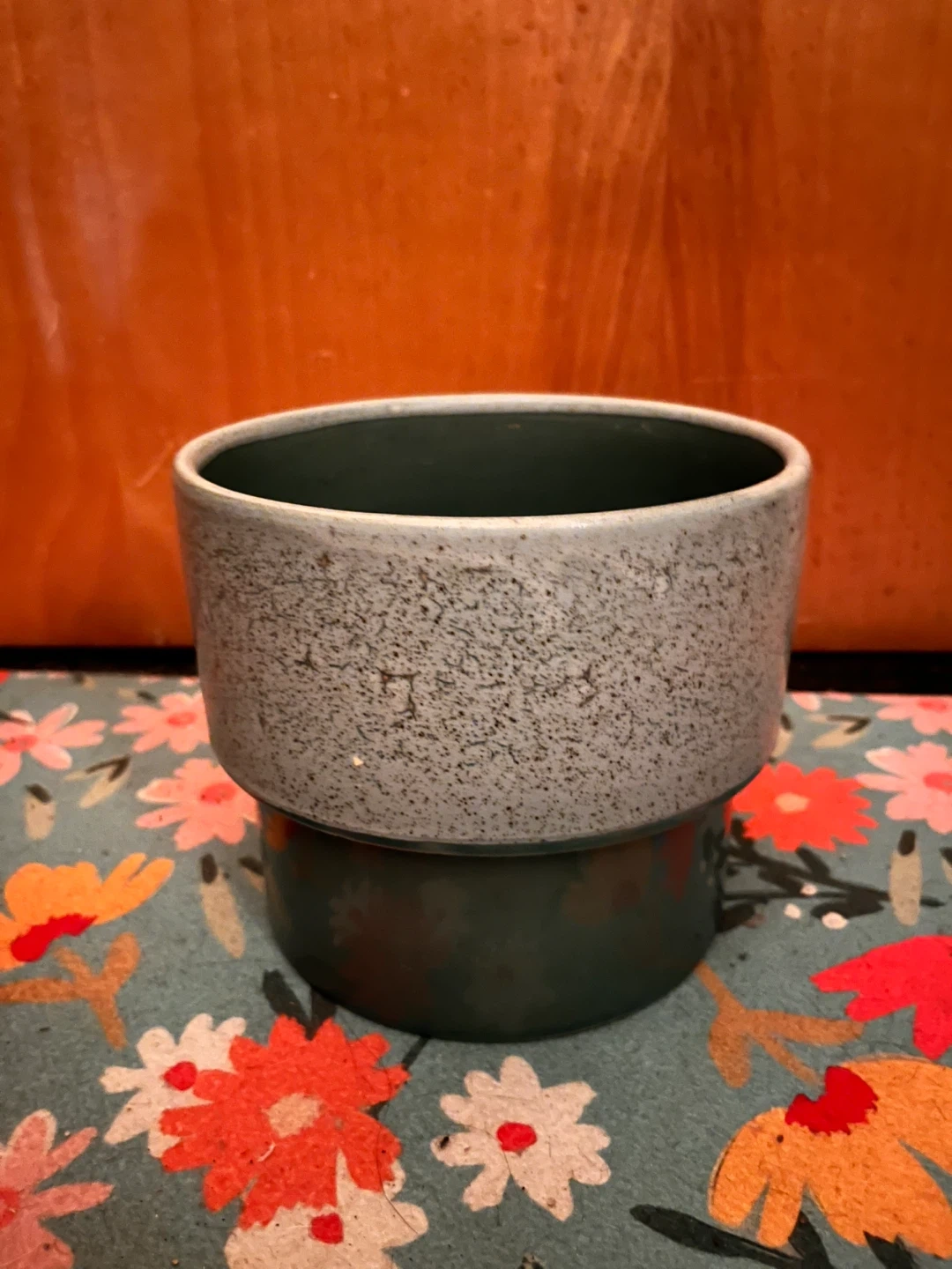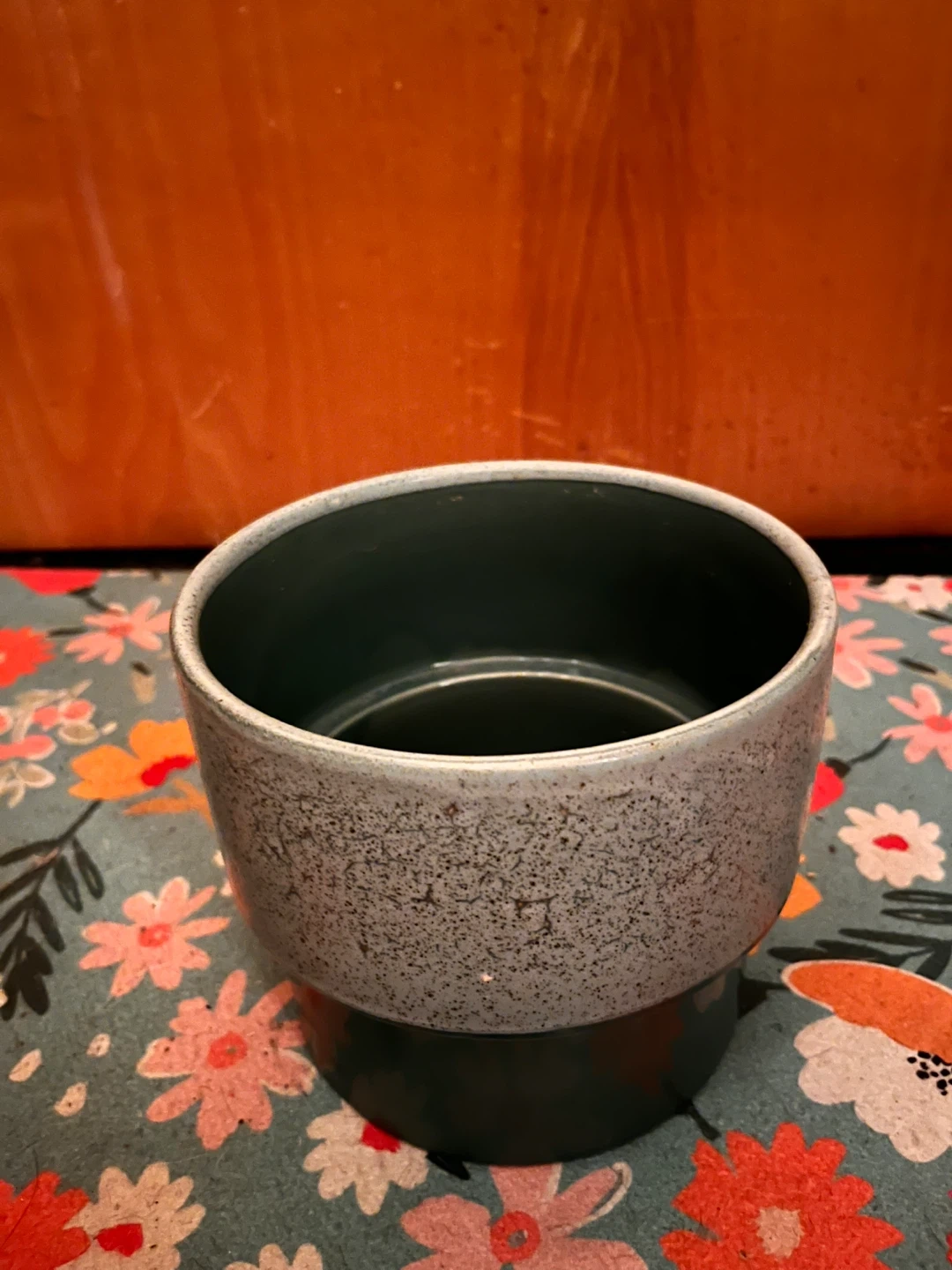 This is a stylish grey speckled ceramic planter pot. It's a good size for small to medium houseplants. Use it to add a touch of modern decor to your home!