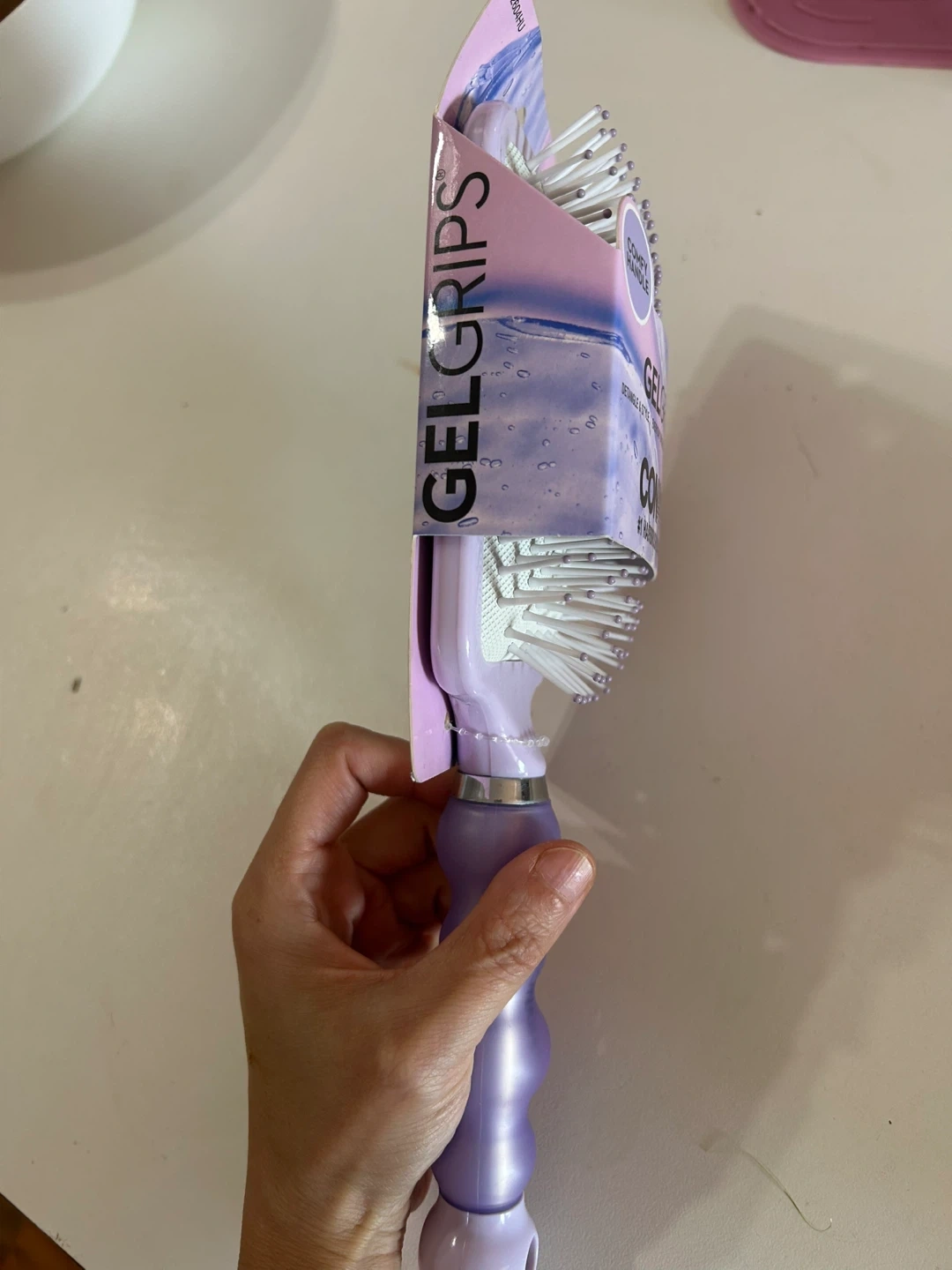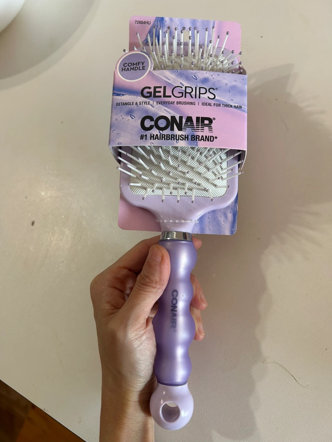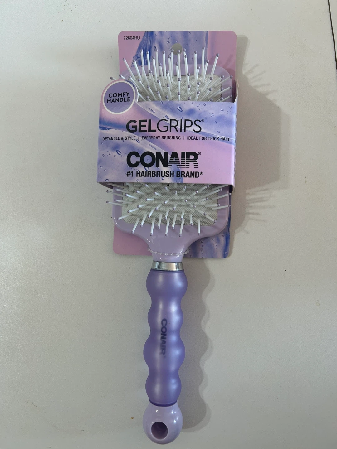 This Conair brush has a soft gel, comfort-grip handle. It's perfect for all hair lengths and textures and gently detangles wet or dry hair. The wide paddle surface smooths larger areas of hair.