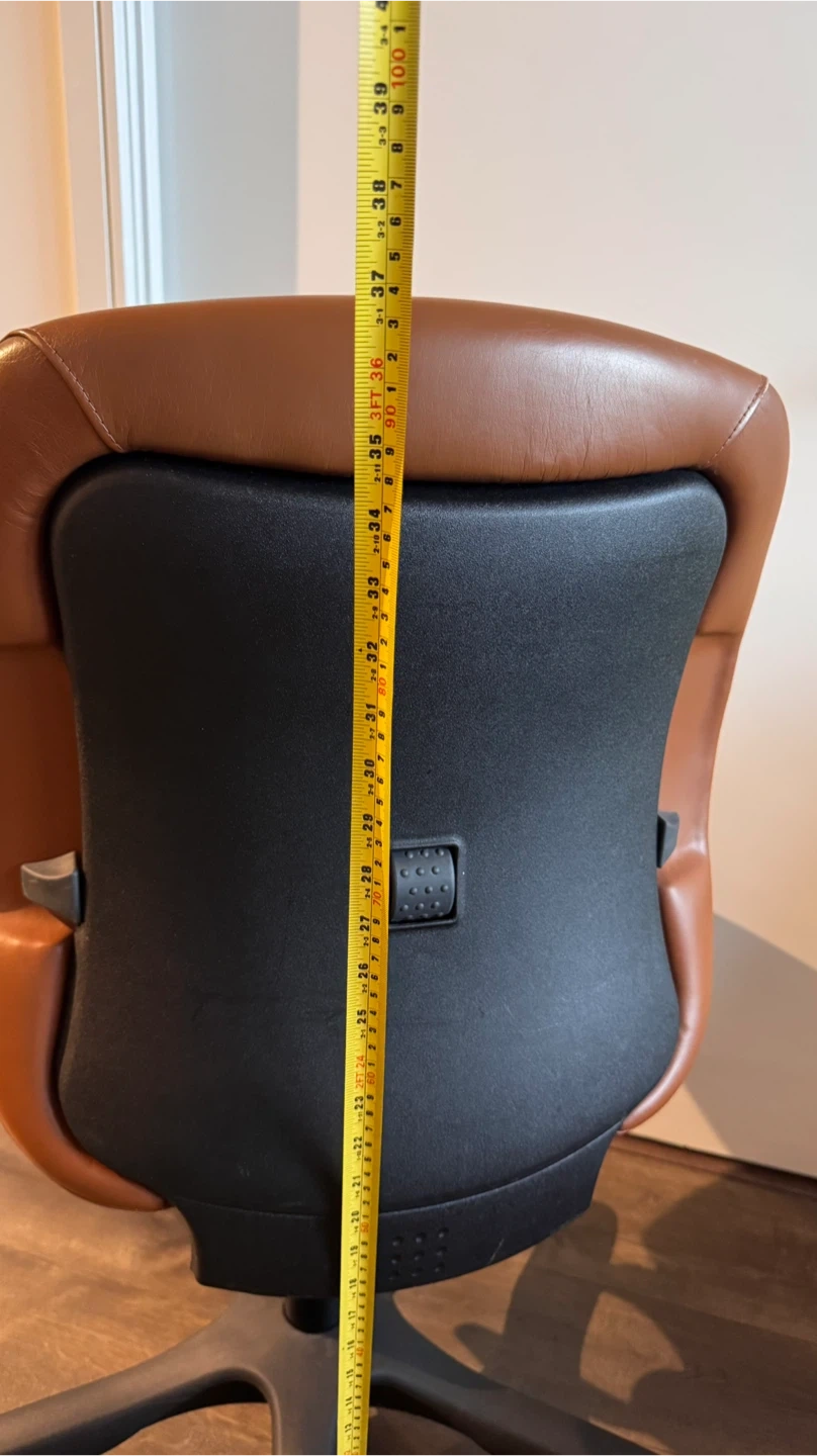 Selling a comfortable office chair in a warm caramel-brown finish.