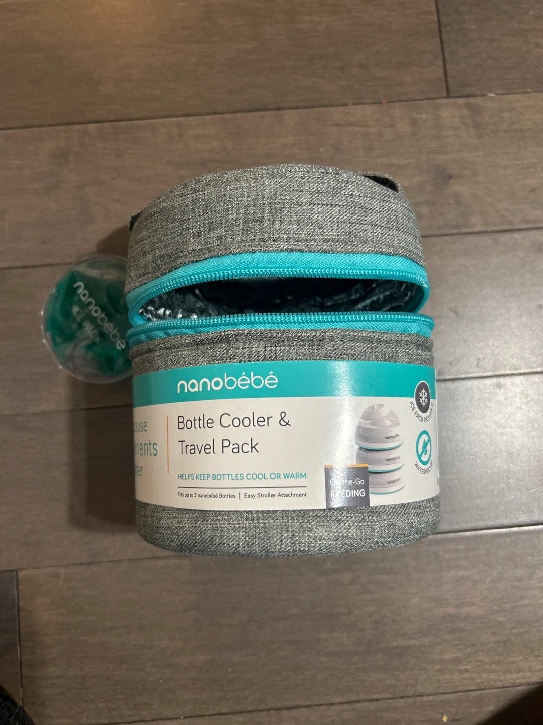 This Nanobébé bottle cooler & travel pack keeps bottles cool or warm. It's designated for ice packs, nipples, and pacifiers. Fits up to 3 Nanobébé bottles and includes an easy stroller attachment.