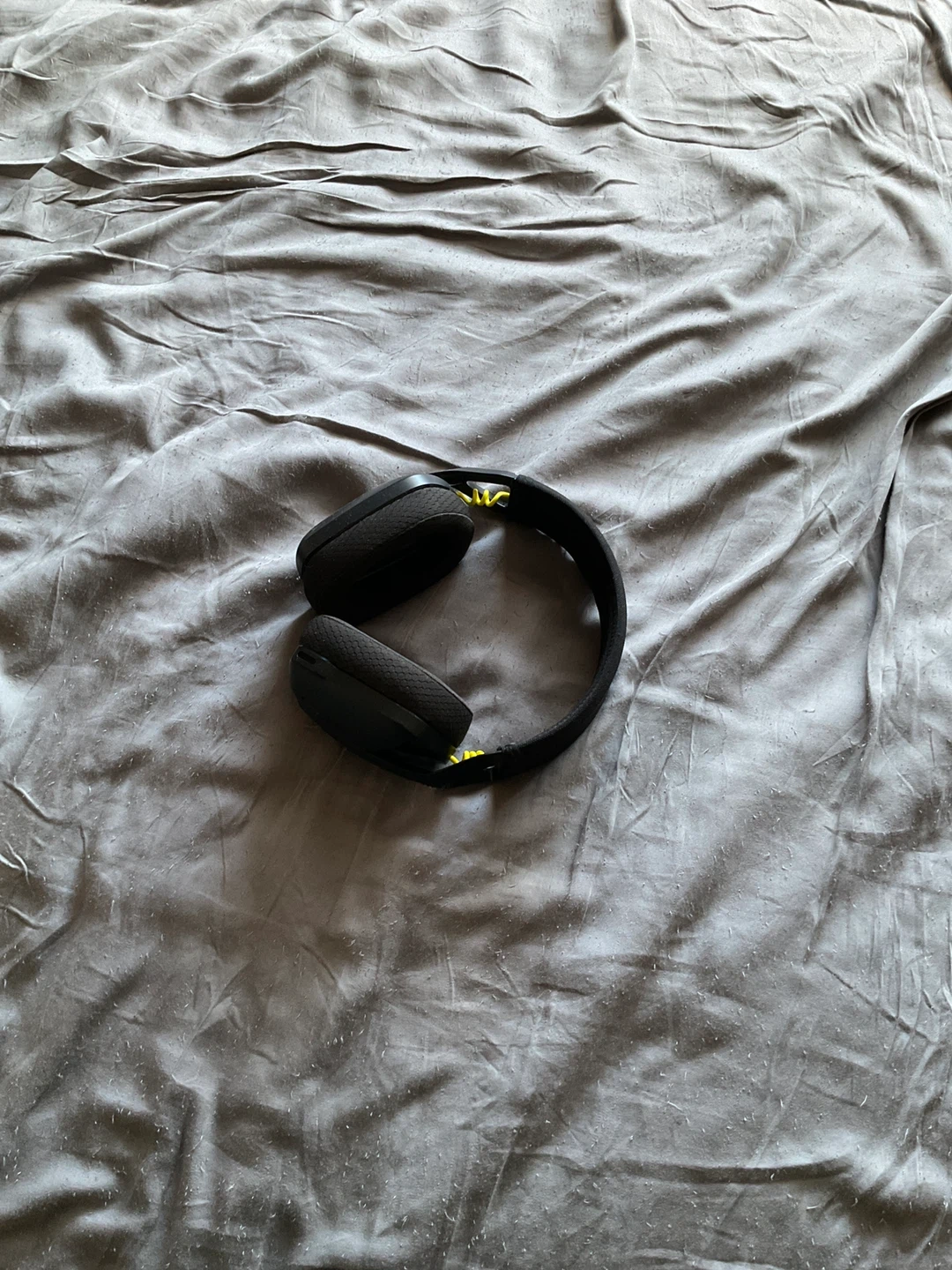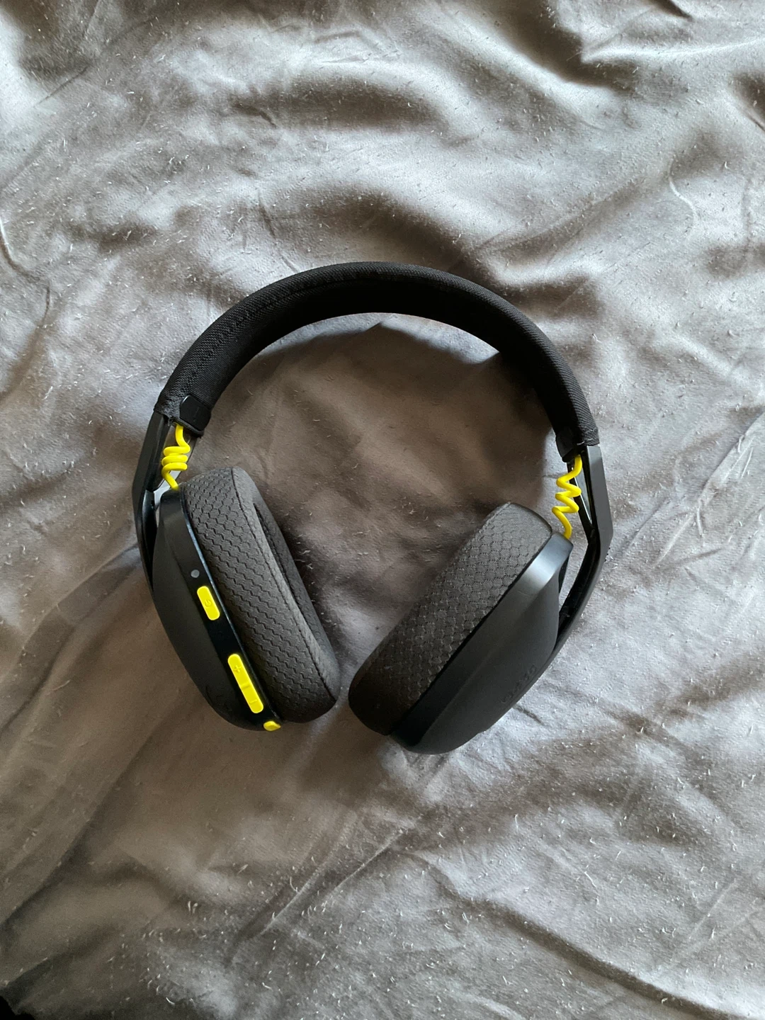(wireless)Logitech G PRO X wireless gaming headset. It's black with yellow accents and features comfortable earcups. Great for long gaming sessions!