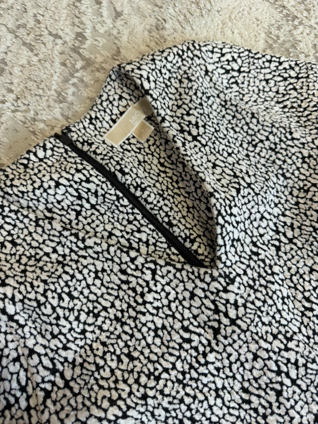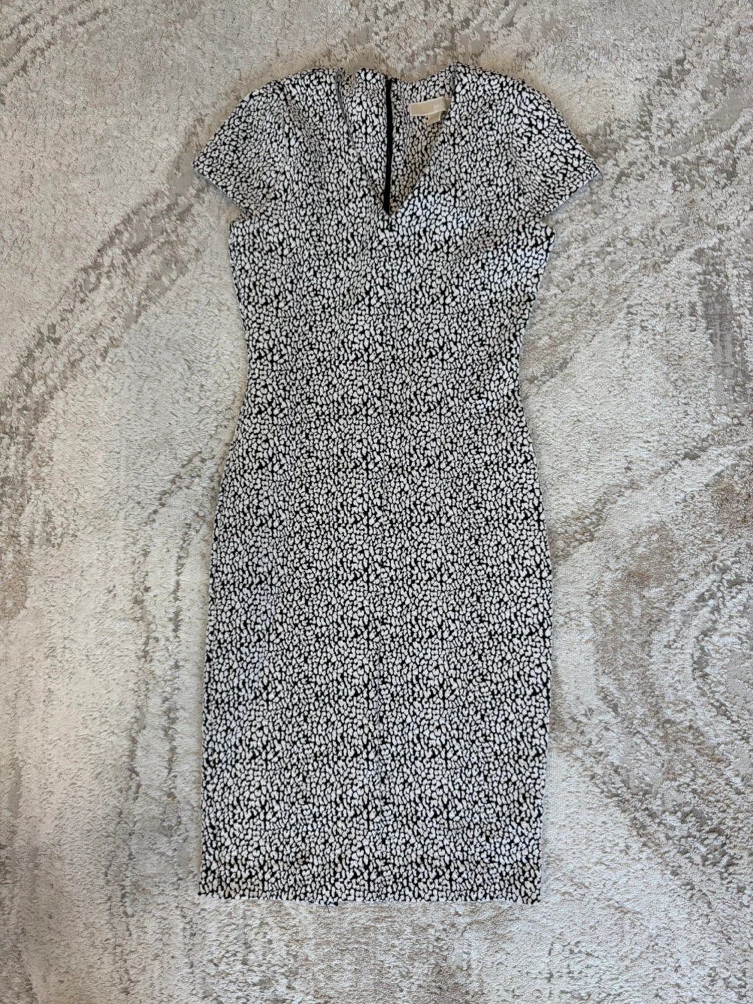 This is a Michael Kors dress in a black and white print. It's a size small and has a V-neck and short sleeves. Great for work or going out, new!
