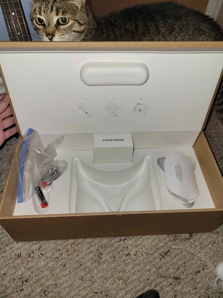 Hi, I'm selling my Meta Quest 2 128GB. I got it a while ago but haven't used it much, so it's still in great condition. There was a small crack on the plastic near the nose, but it has been repaired and isn't noticeable. Charger included. No high-speed link cable. Firm $150 or possibly trade for Xbox/Playstation/Nintendo stuff. Pickup in Wellesley.