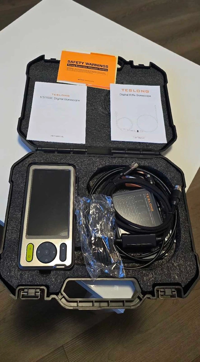 Borescope monitor, borescope probe, 5 side-view mirrors (.22, .243, .30, .38, and .40 caliber), 32 GB microSD memory card, USB-A / Micro-USB / USB-C to aviation cable, USB-C charging cable, instructions and manuals. Pickup in Oakville.