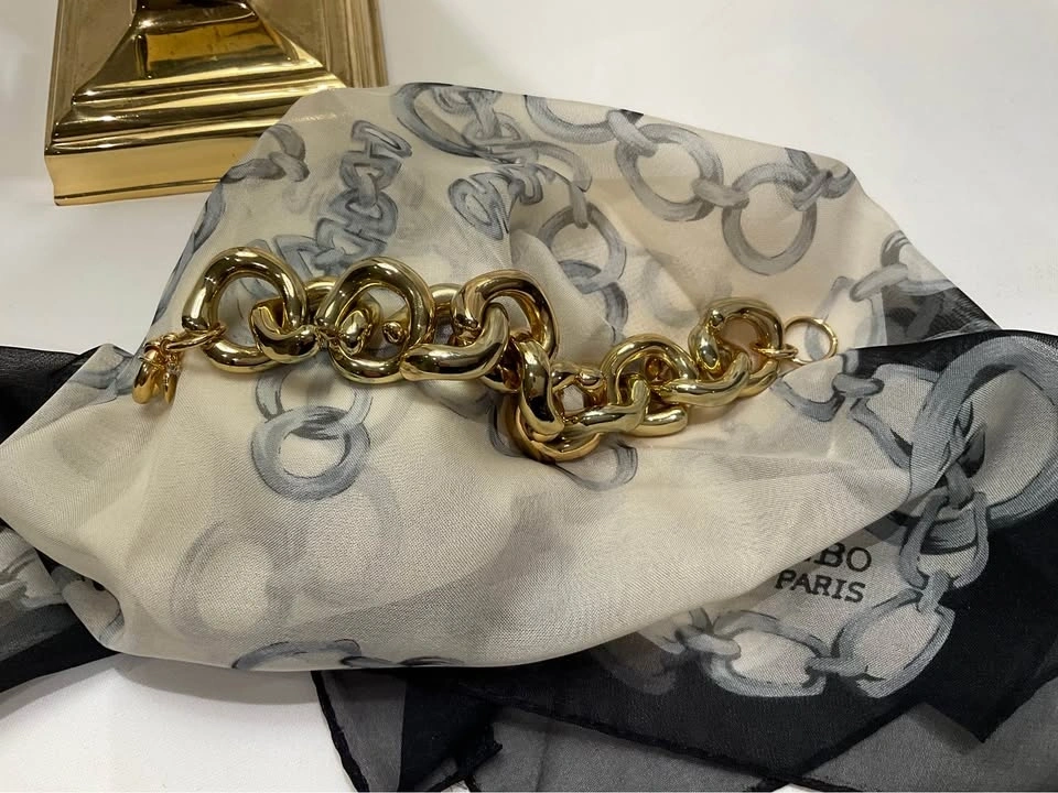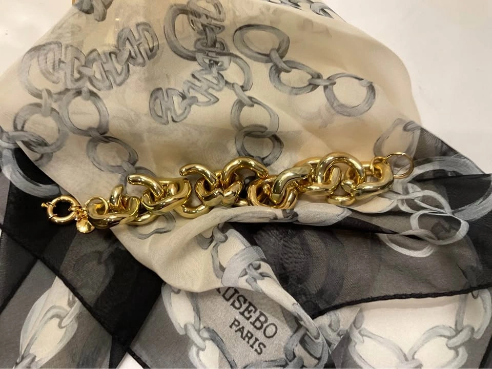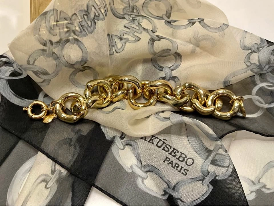 Chunky high polish bracelet with a lobster spring clasp. Loop to loop length is 8 1/2". From a smoke & pet free home. Cash only, pick up in Richmond Hill (Bathurst & King Rd).