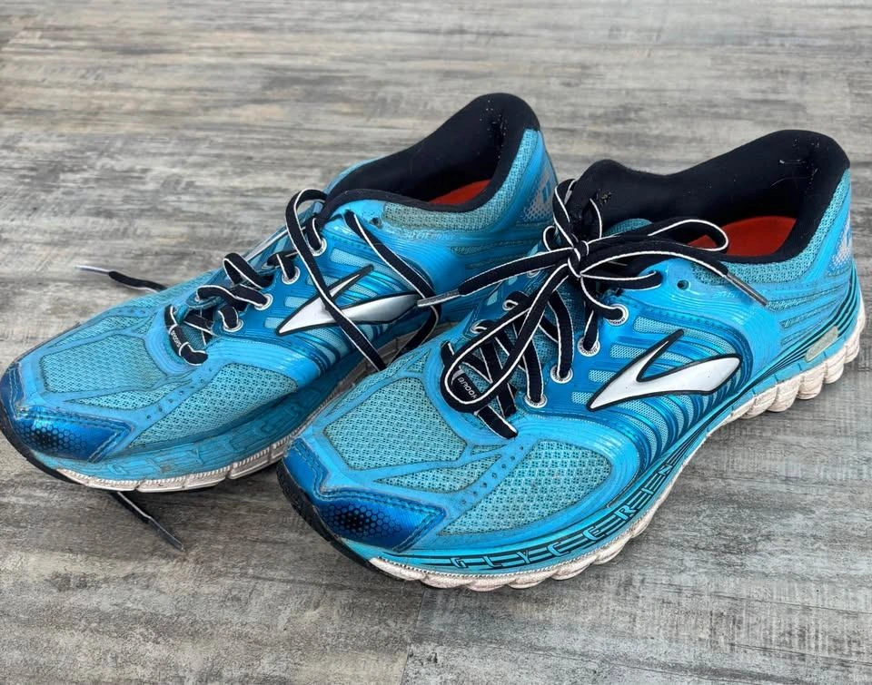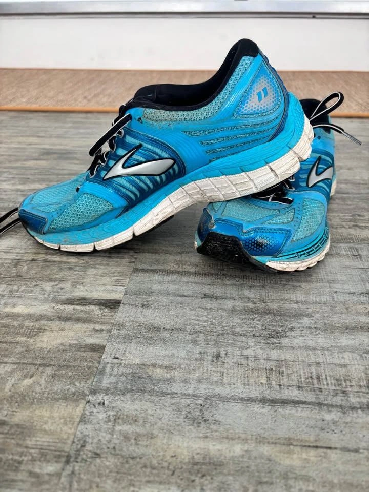 Brooks brand running shoes. Need a cleaning but otherwise in great shape! Conducting a purge.