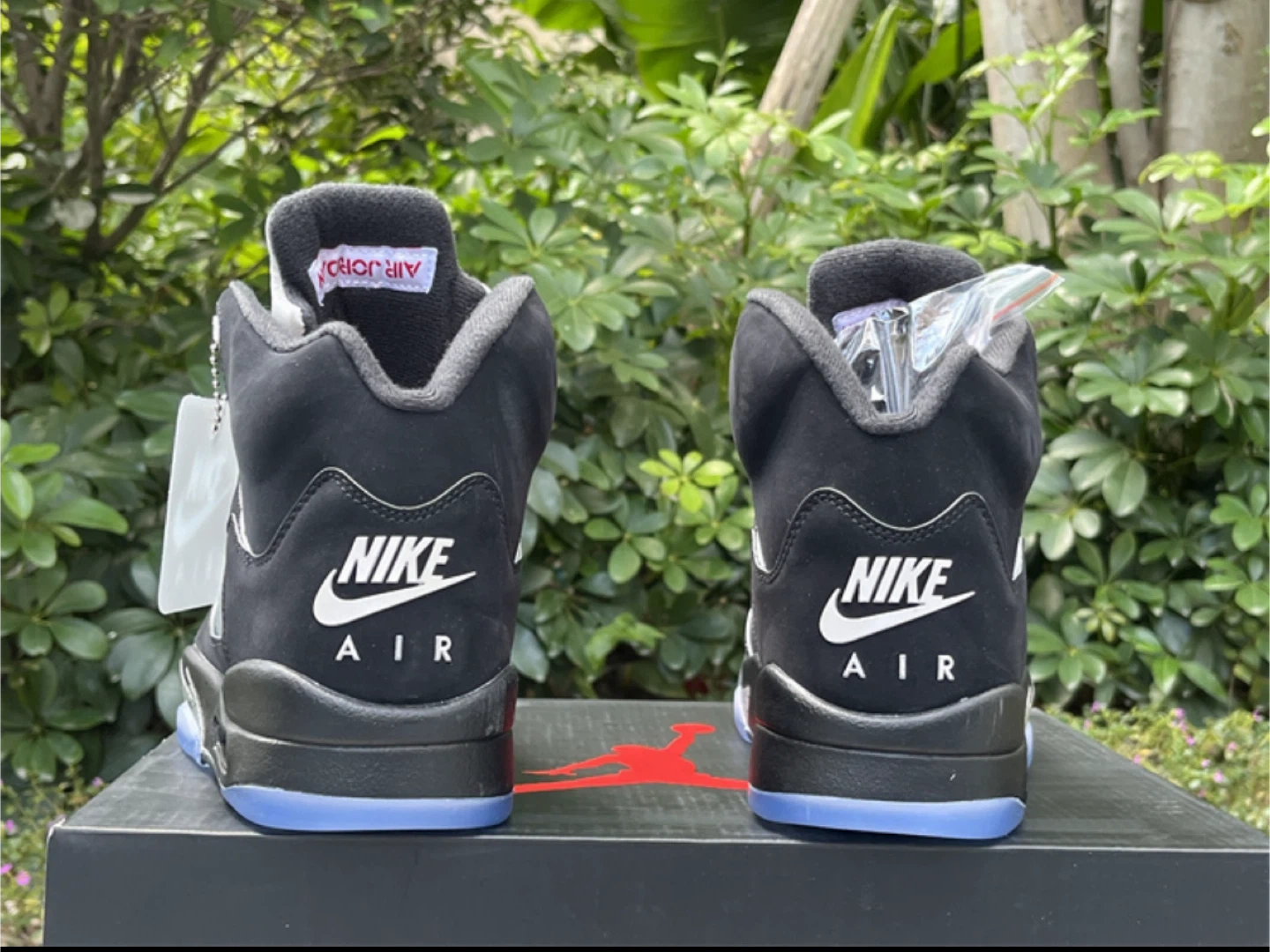 Selling a brand new pair of Air Jordan 5 metallic black Retro sneakers. They are in pristine condition and come with the original box. These classic Jordans are a must-have for any sneakerhead!