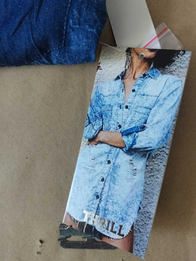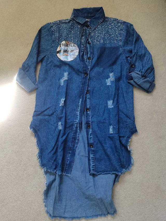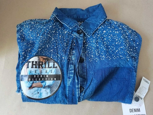 This is a brand new Thrill Denim Collection long sleeve button-up shirt for women, featuring a stylish design with button closure. It's perfect for adding a trendy touch to your wardrobe. Specifications: - Brand: Thrill Denim Collection - Sleeve Length: Long Sleeve - Closure: Butto - Colour: Blue - size:M WOMEN Finders keepers, but if you're seeing this ad, rest assured, it's still up for grabs!