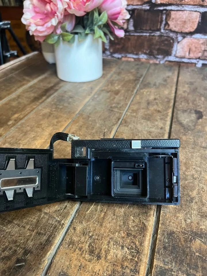 Capture the essence of retro photography with the Kodak Instamatic X-15, a vintage camera hailing from the cherished 1970's era. This classic piece boasts a sleek black finish, complemented by a convenient wrist strap, allowing for easy portability and steady handling. Ideal for enthusiasts of vintage movie and photography, the Kodak Instamatic X-15 is a treasure from the past that continues to hold appeal for collectors and hobbyists alike. It's a tangible piece of history that represents a bygone era of craftsmanship and innovation.