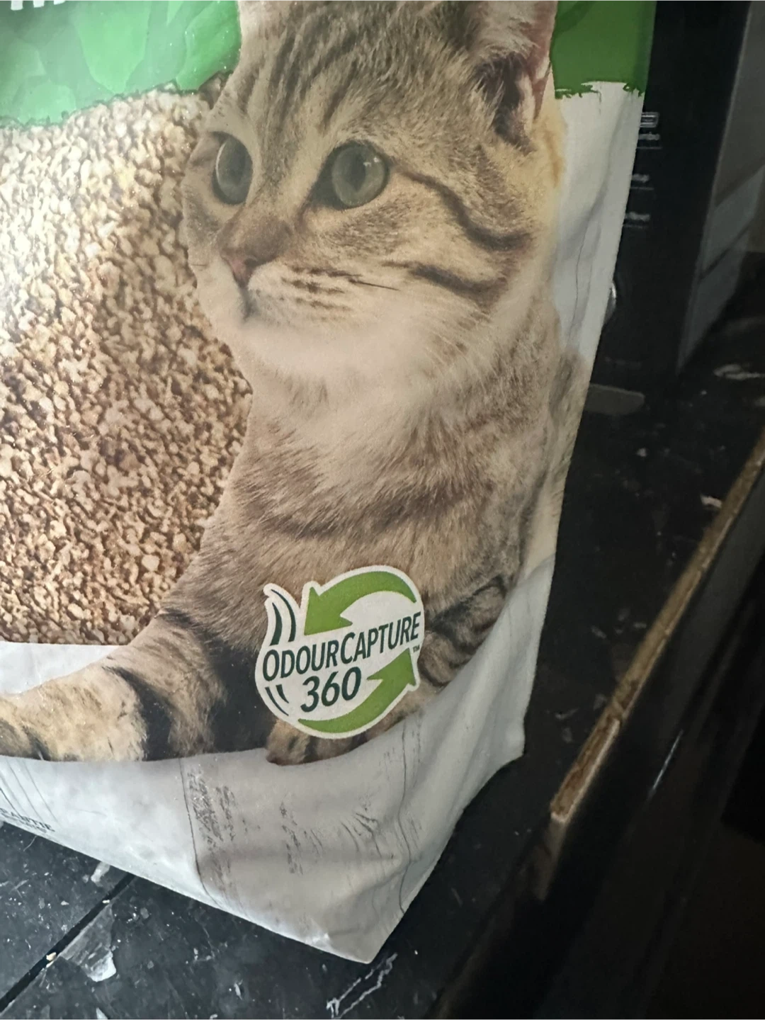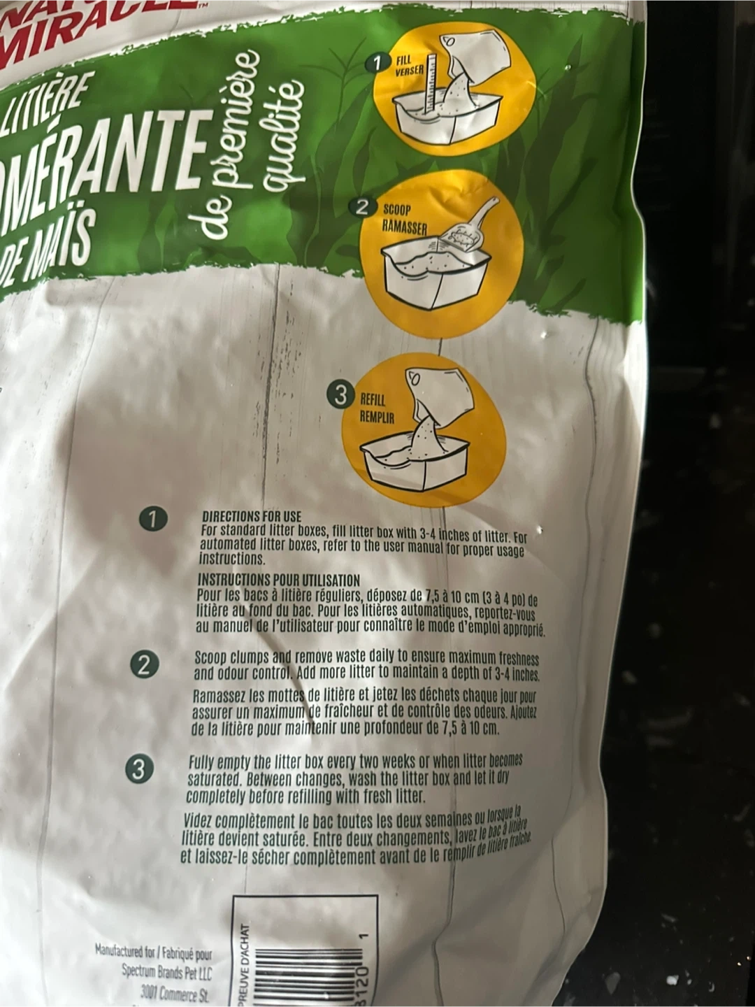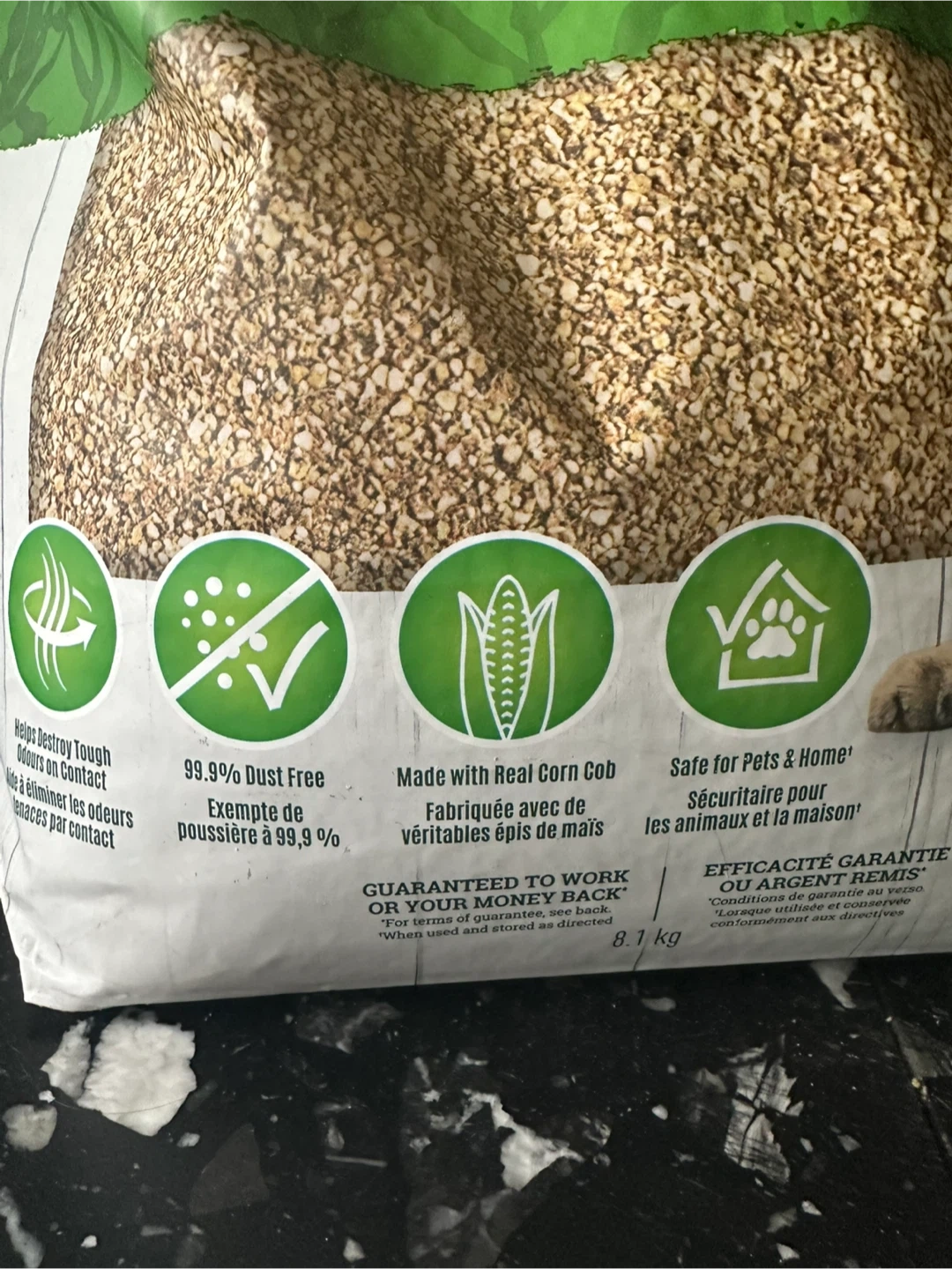 This is Nature's Miracle clumping corn cob litter. It's 99.9% dust-free and made with real corn cob. The bag is resealable for no messes! It's safe for pets and home. Some has been used to fill a litter box once, selling as I no longer need. Smoke free home.