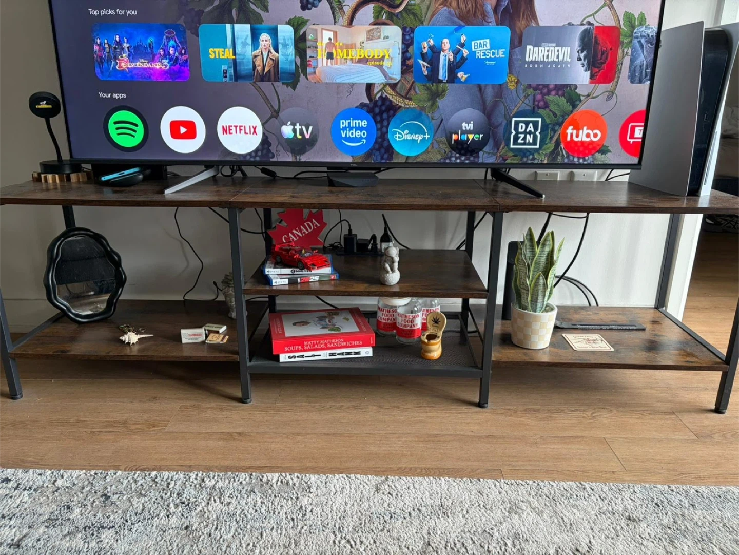 Tv Stand 180 cm × 40 cm × 36 cm (length × width × height). It fits TVs up to 75 inches.