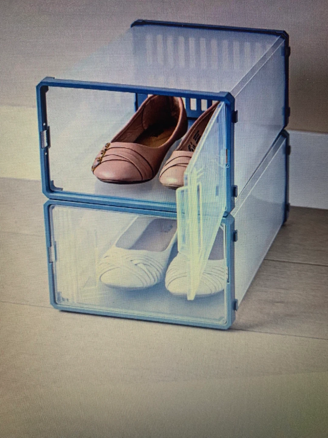 Five clear plastic shoe storage boxes. Brand new in an unopened box. These are stackable for convenient organization. Clear design lets you easily see what's inside! Five shoe boxes for $7.50.