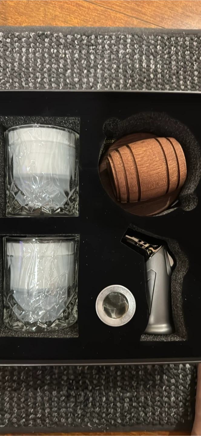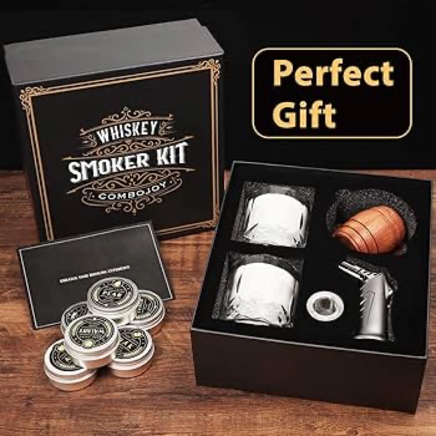 This kit includes two whiskey glasses, a wooden smoking dome, and a torch lighter. It's perfect for infusing cocktails with smoky aromas.