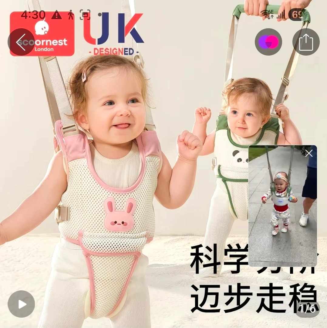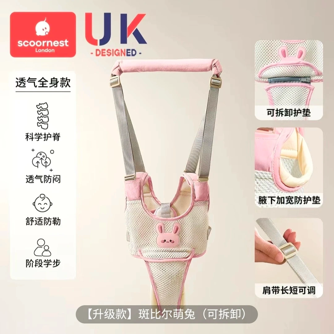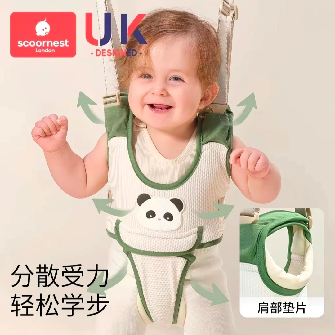 This Scoornest London baby walker harness helps your little one learn to walk safely. It's designed with breathable material and adjustable straps for comfort. Features a cute panda or bunny design. This harness is great for assisting babies with their first steps!