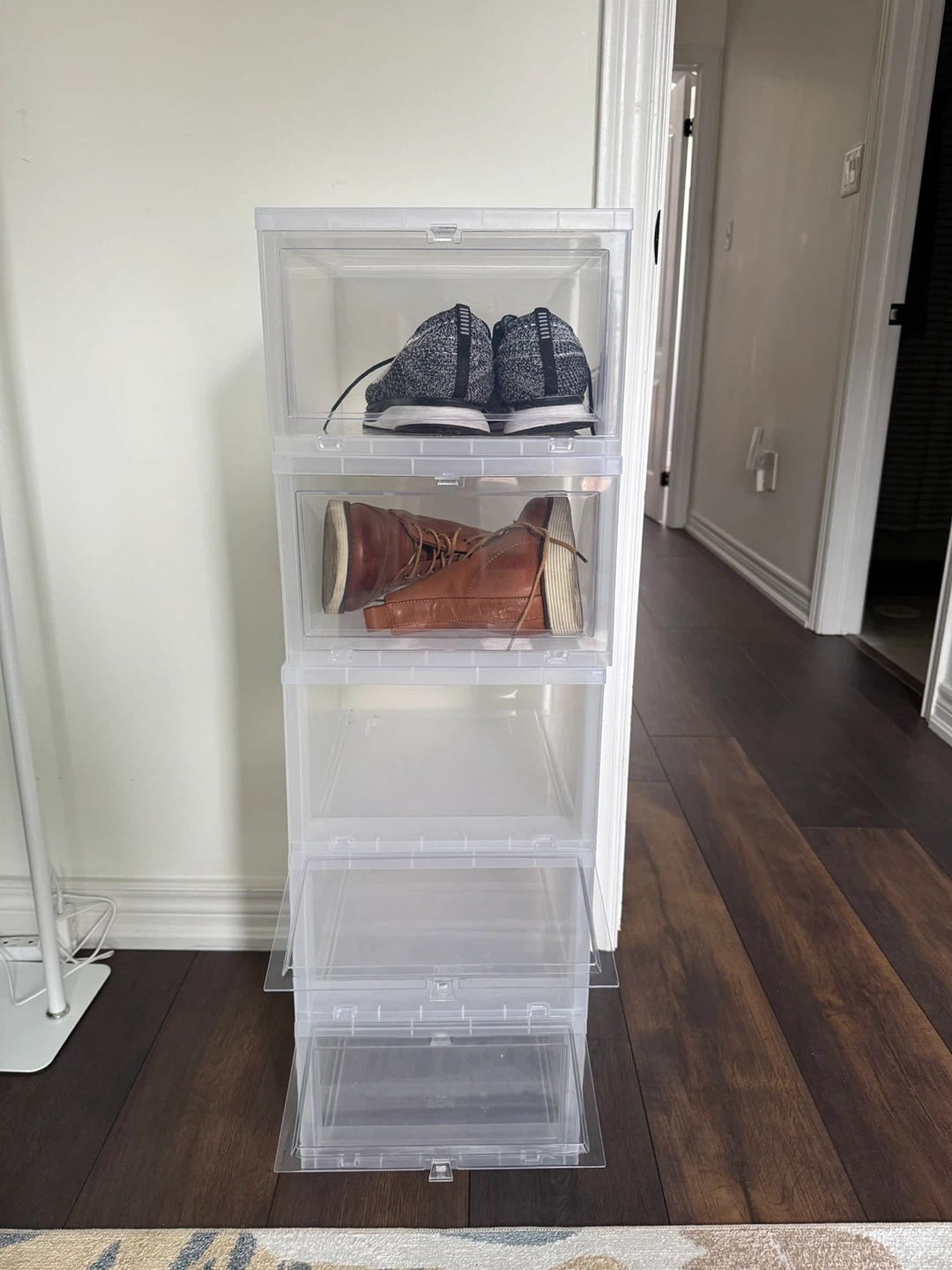 Sneakers, flats, and short boots - store and access your entire shoe collection with our best drop-front shoe boxes by the case.