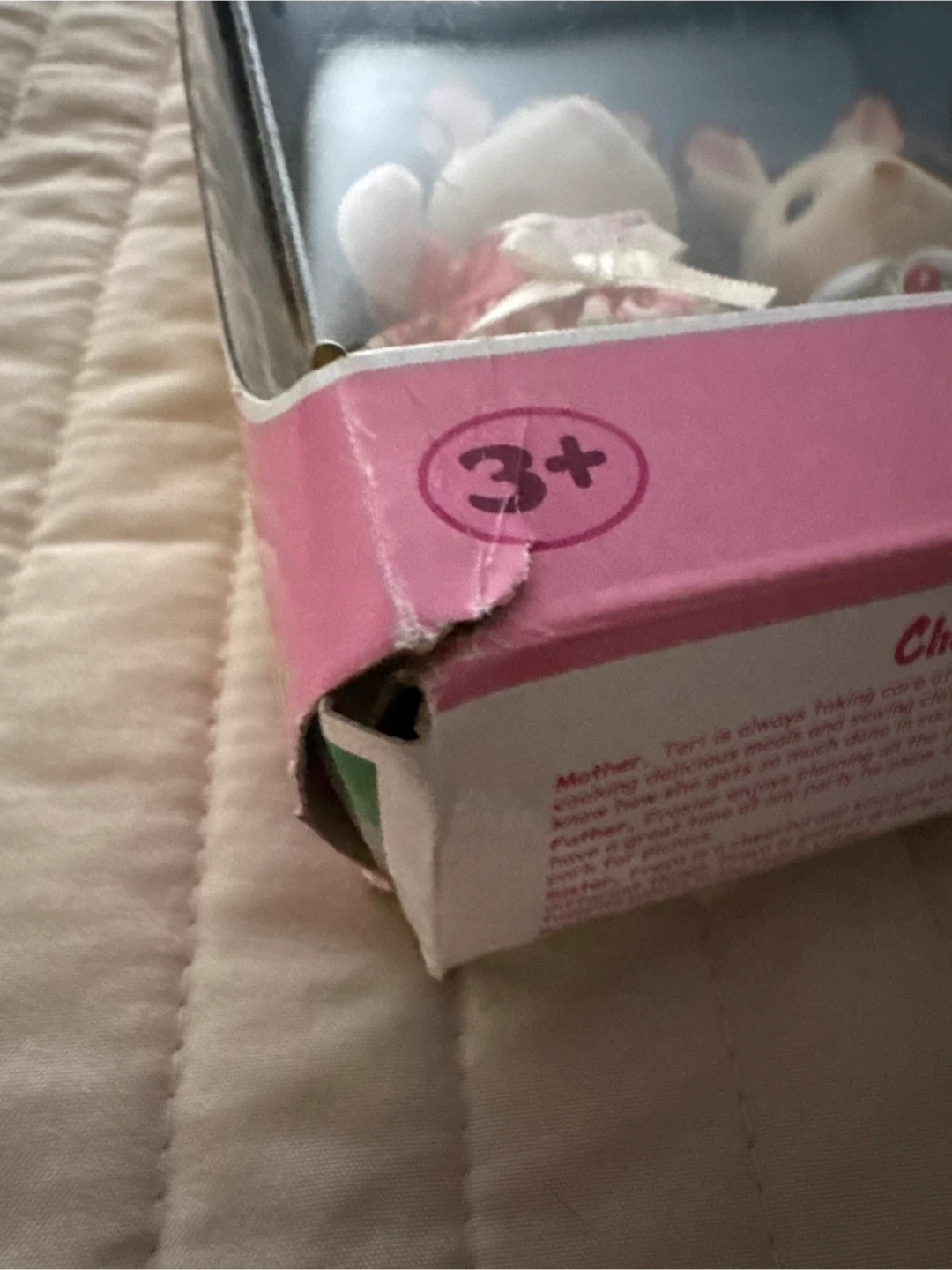 This is the Chocolate Rabbit Family set by Calico Critters. It includes four adorable rabbit figures, each dressed in unique outfits. Recommended for ages 3 and up.
