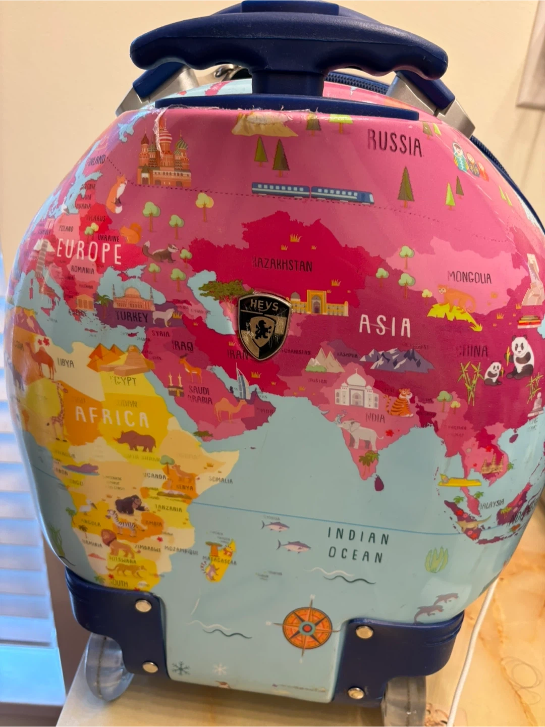 This HEYS kids luggage features a fun and colourful world map design. It's perfect for little travellers to pack their essentials for a trip. The hardside shell helps protect contents.