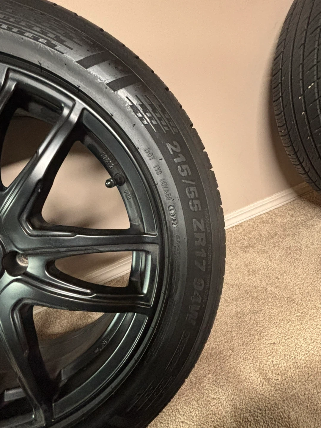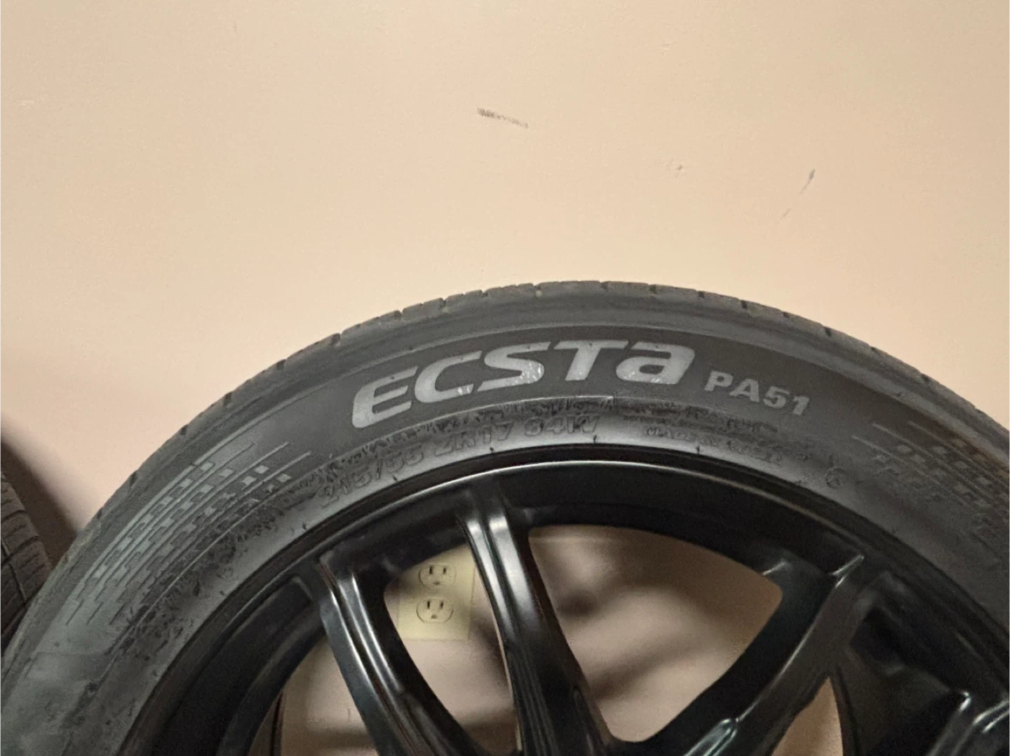 Set of four Kumho Ecsta PA51 tires, size 215/55R17 94W. These are summer tires and have been used for one season. The bolt pattern is5 x 105 and the Center bore is 56.6 in diameter.