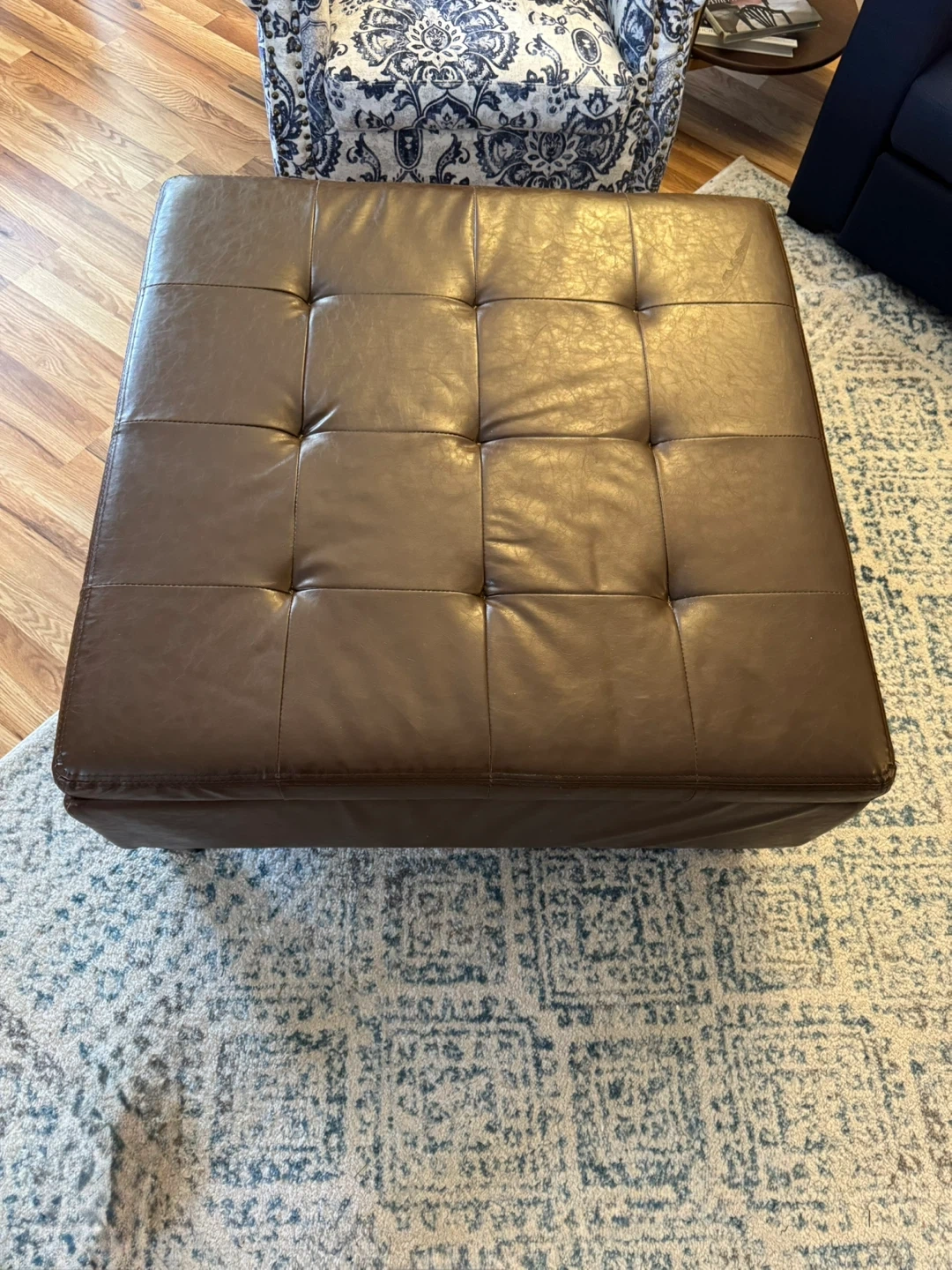Leather storage ottoman
