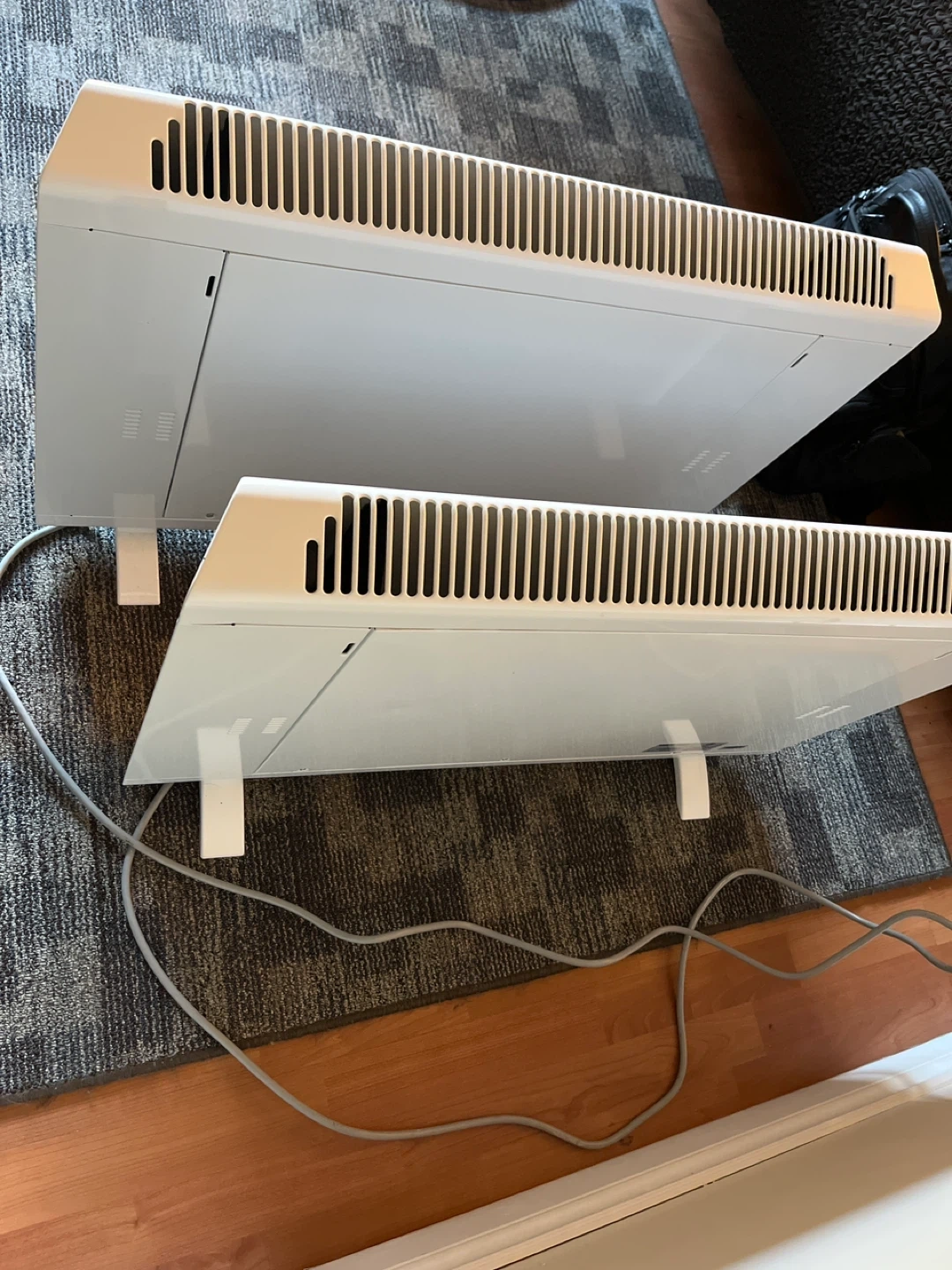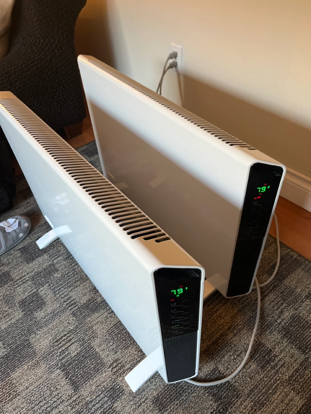 Two DeLonghi white panel heaters are available. They're electric heaters with digital temperature displays. These units are great for providing quick, quiet warmth.