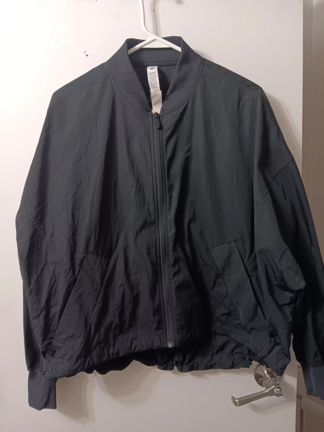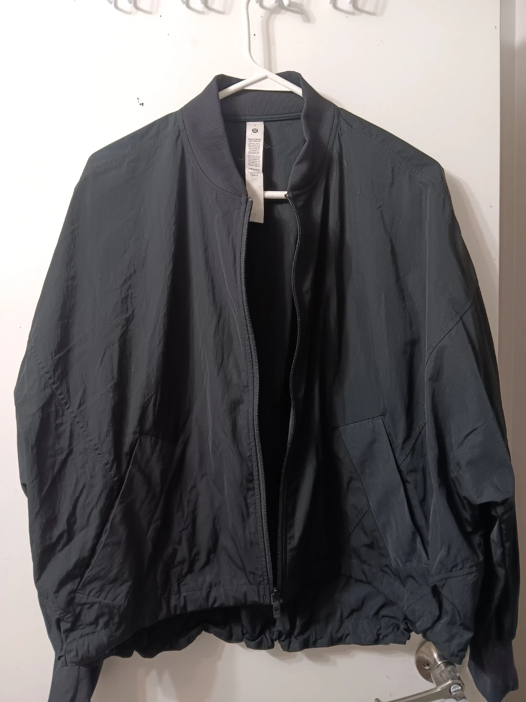 Selling a men's, Lightweight, all black, Lululemon Bomber jacket on a size small. The body is made of 73% polyester and 27% elastane. Fits a bit on the larger size, would probably work on a men's size medium as well. In perfect, like-new condition..only worn twice!! Original retail $$ was $140.00..huge savings on this versatile jacket!!