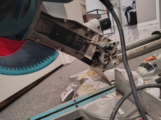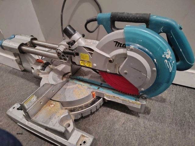 This Makita LS1017L 10" sliding dual bevel miter saw is in working order and comes with a like-new Diablo saw blade. It could use a good greasing and a few other minor things. It's missing the dust bag and side gates, and the laser cut line needs 2 AA batteries to work. Otherwise, it's a nice saw. Feel free to message if you have any questions.