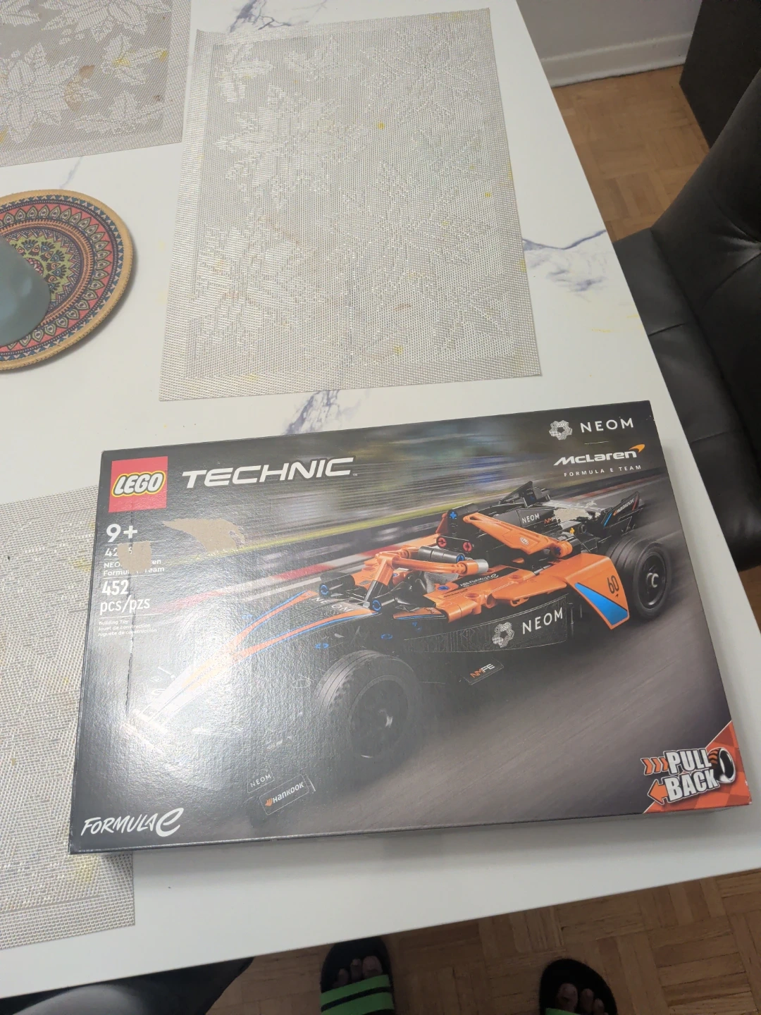 This LEGO Technic set features the McLaren Formula E race car. It includes 452 pieces for building. Recommended for ages 9+.