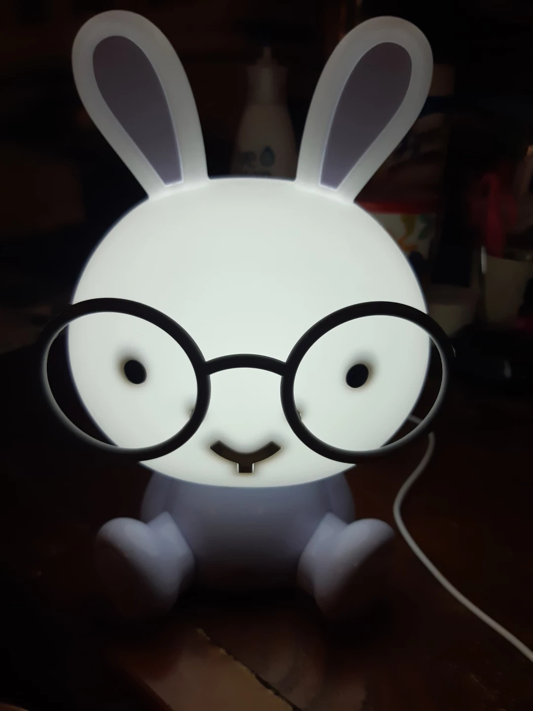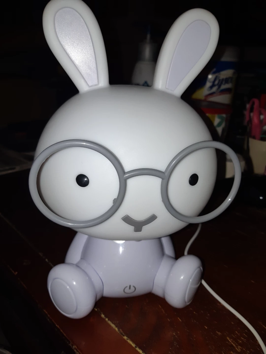 This adorable rabbit night light is perfect for a kid's room or anyone who loves cute decor! It features a sweet rabbit design with glasses, providing a soft and comforting glow at night. Three setting of light with touch button.