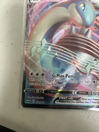 Elevate your Pokémon TCG collection with the Lapras VMAX - 050/202 - Sword & Shield Base Set Ultra Rare Card. This impressive card features the majestic sea creature in its full glory, with stunning full art and a holographic finish that brings the dragon-like Lapras to life. As a basic stage Pokémon with the Aqua, Sea Serpent, and Dragon types, it's a formidable addition to any deck or display.