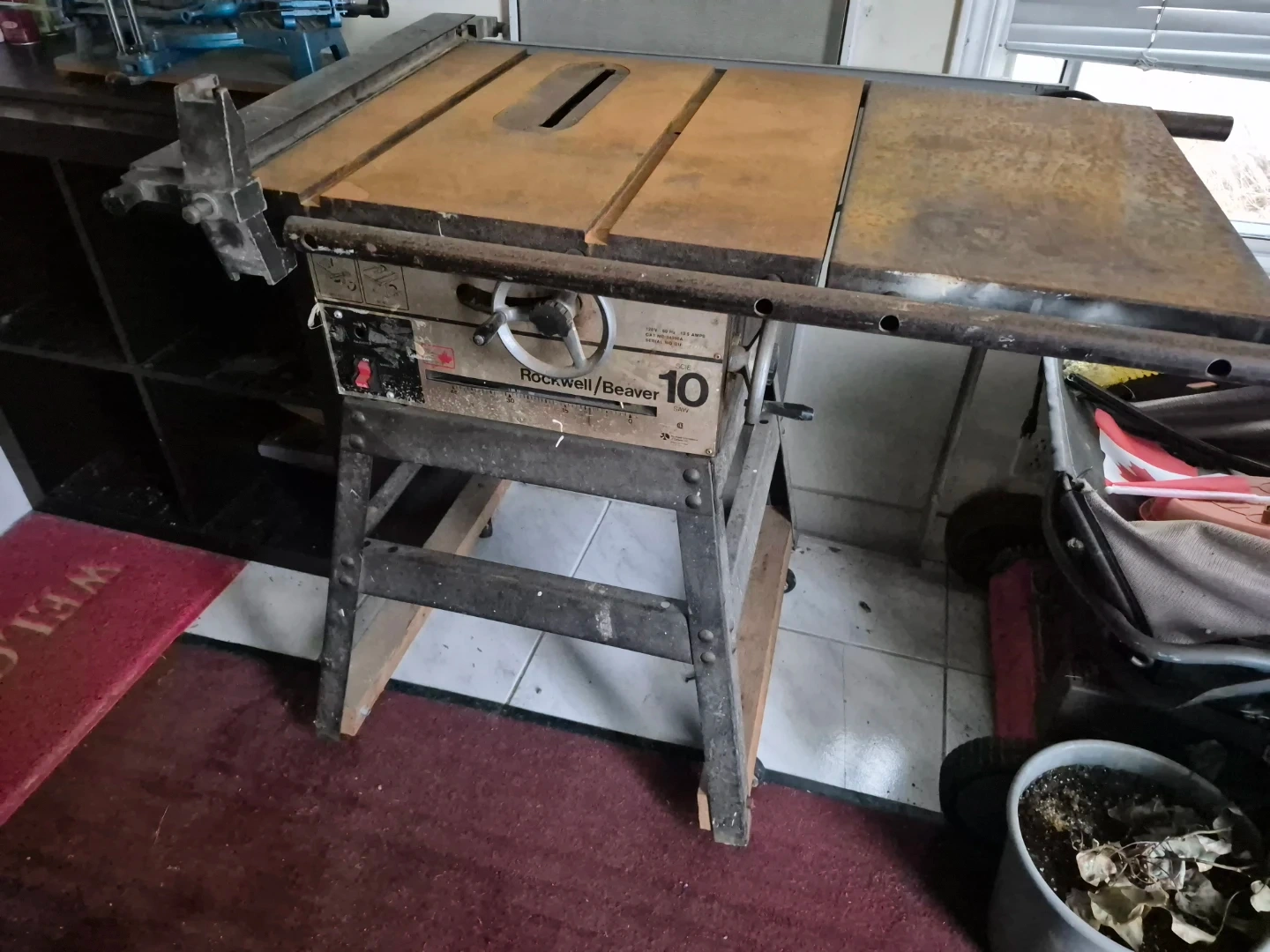 This is a Rockwell/Beaver 10in table saw. Still works but needs some cleaning and a new blade.